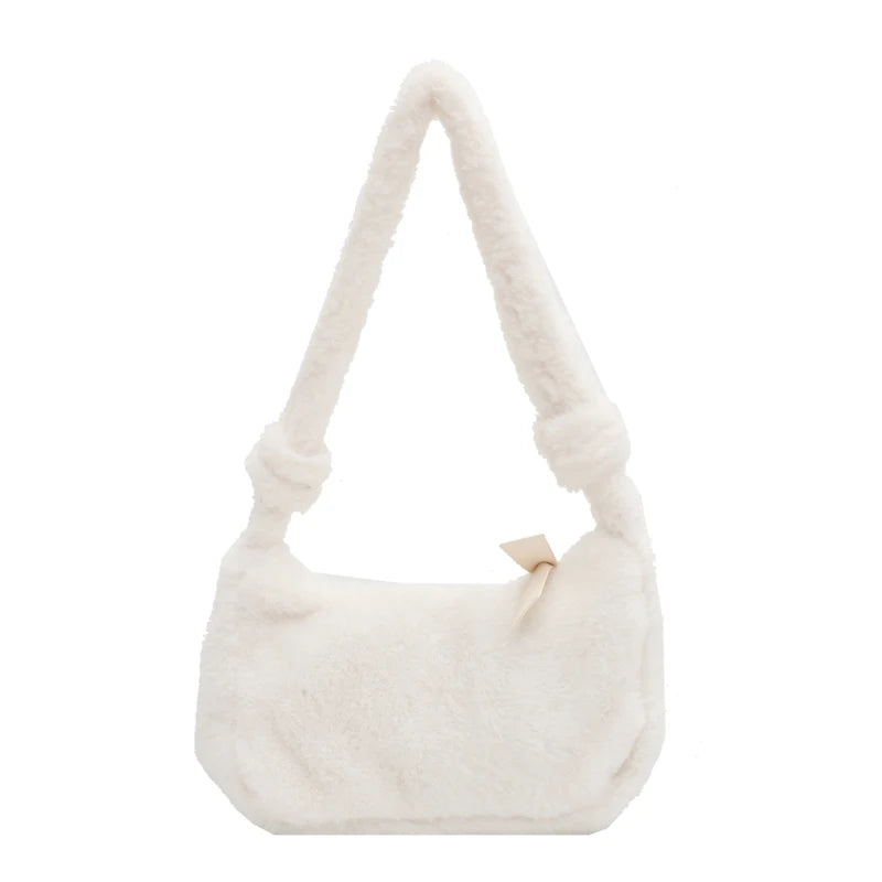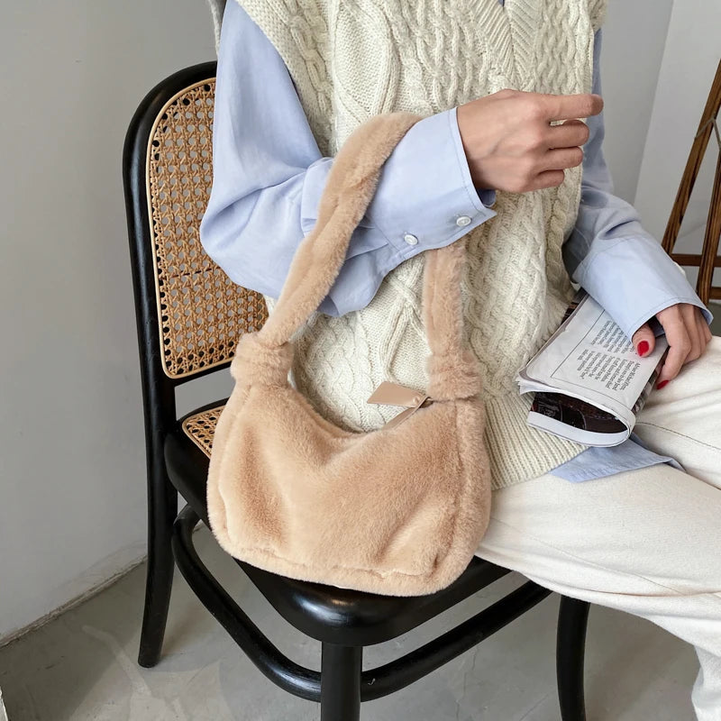 Soft Plush Handbags Faux Fur Hobo Small Shoulder Bag Clutch Purse Solid Female