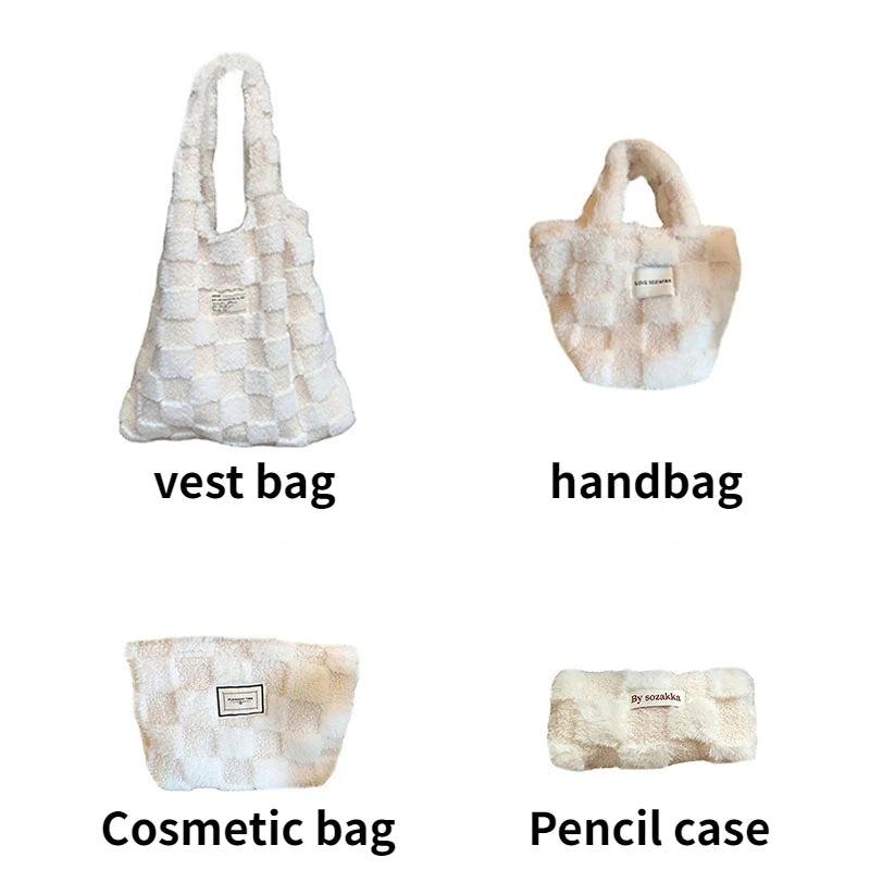 Soft Plush Shoulder Bags Handbags Furry Girls Student Pencil Pouch