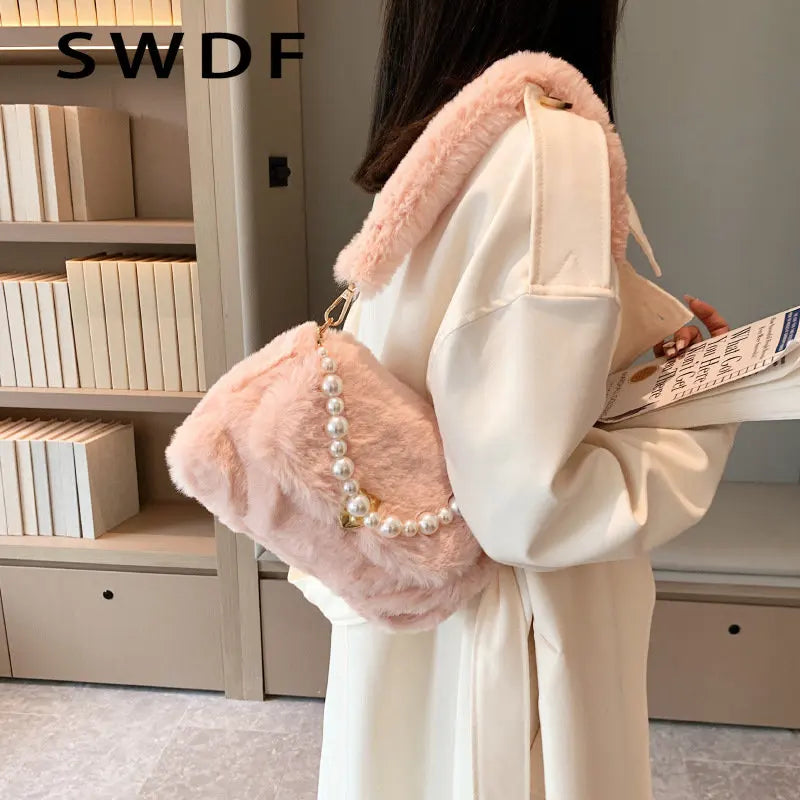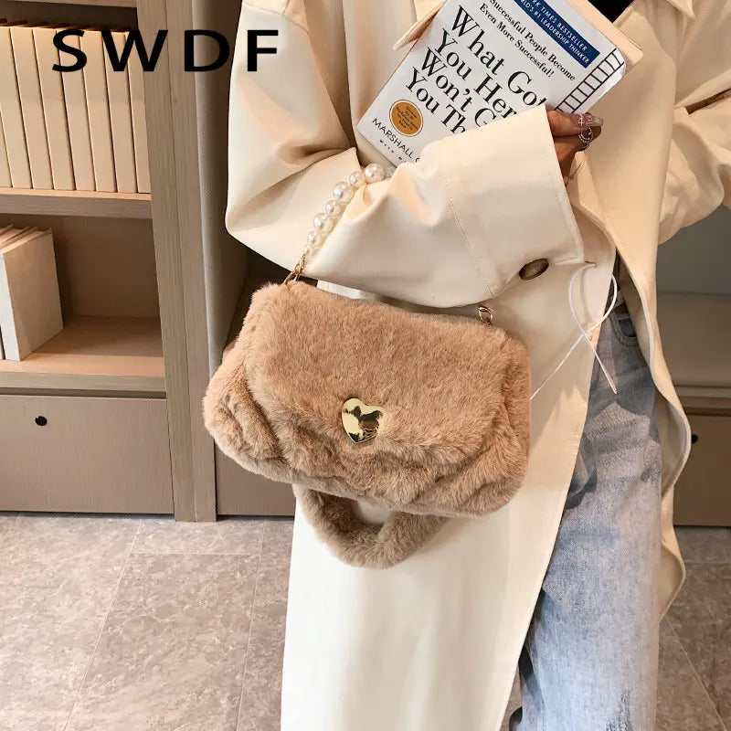 Soft Plush Women Shoulder Bag Faux Fur Small Tote Warm Winter Purse
