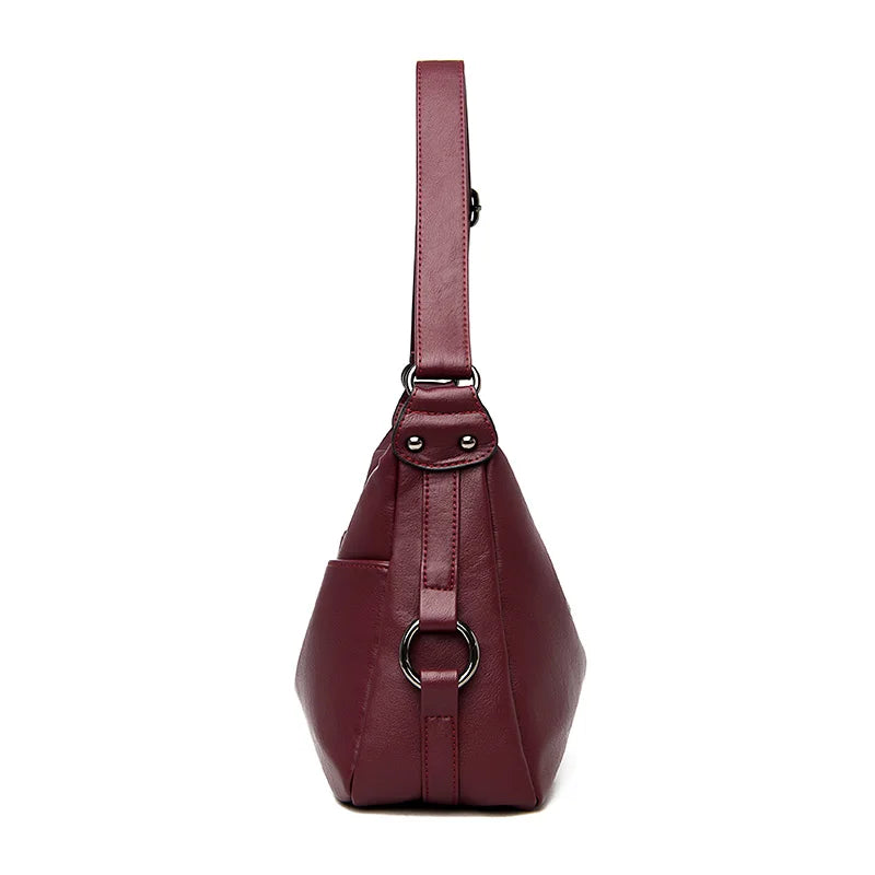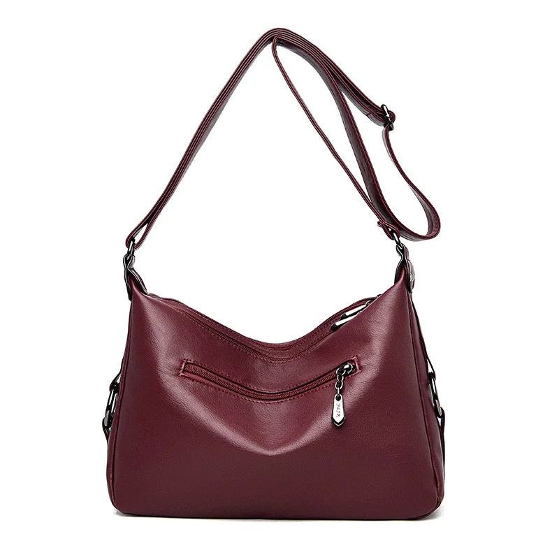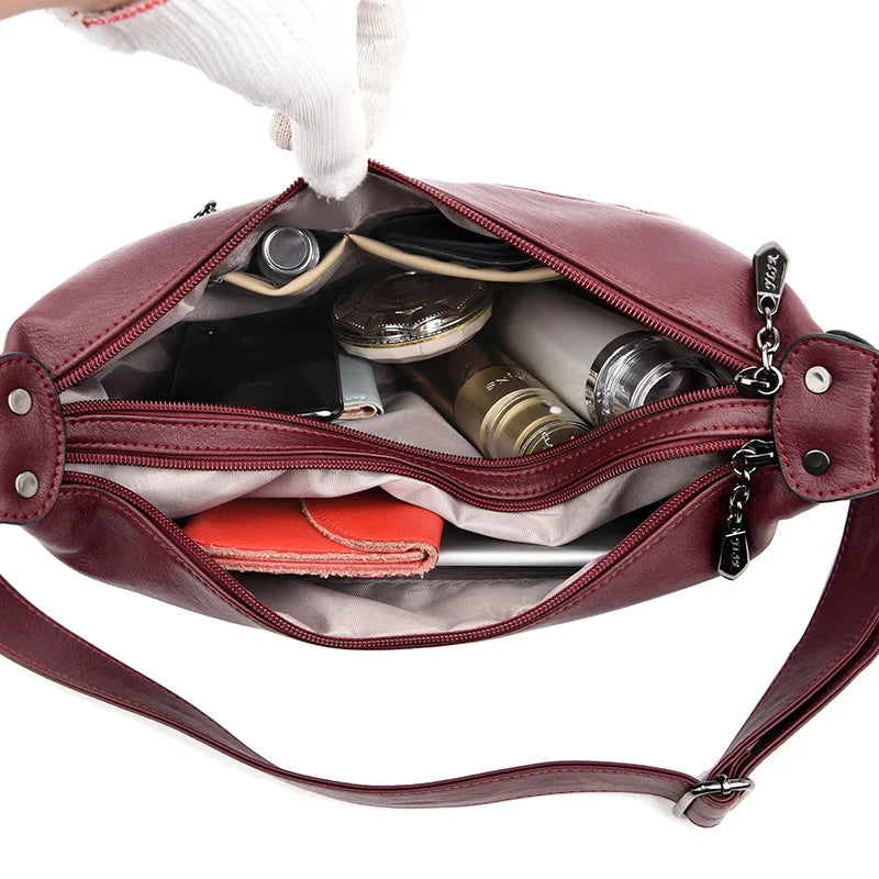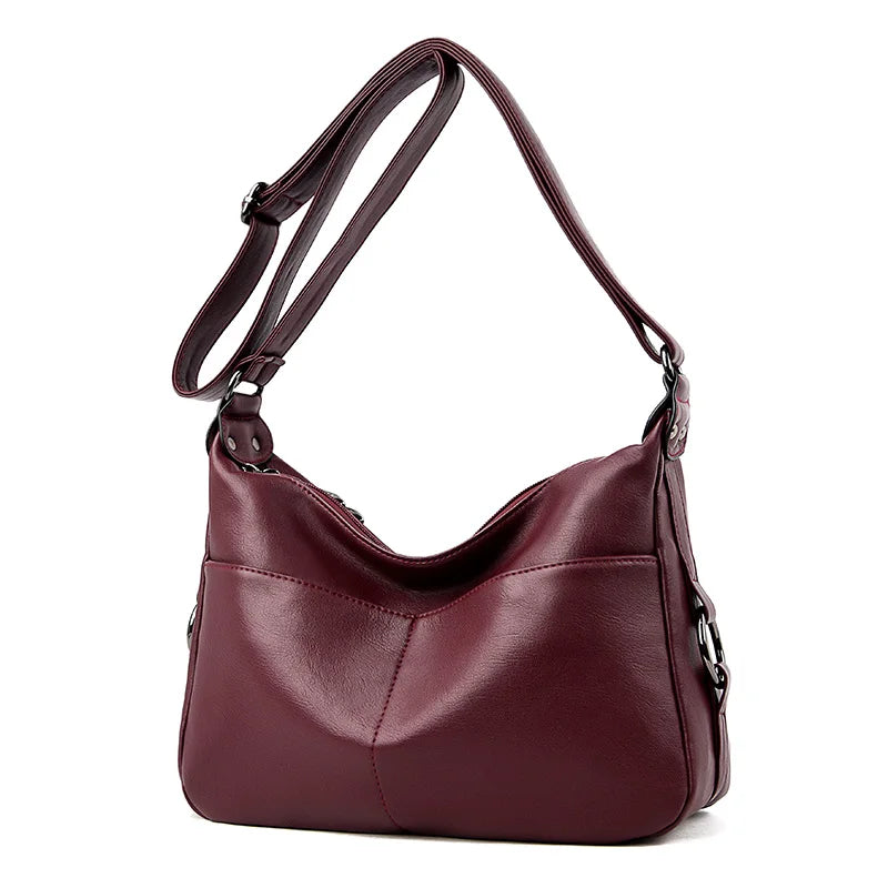This women's crossbody messenger bag is made of soft washed PU leather, perfect for everyday use. It features a spacious main compartment and adjustable shoulder strap. Ideal for mothers on the go.