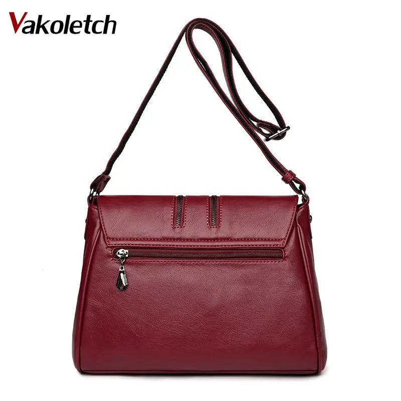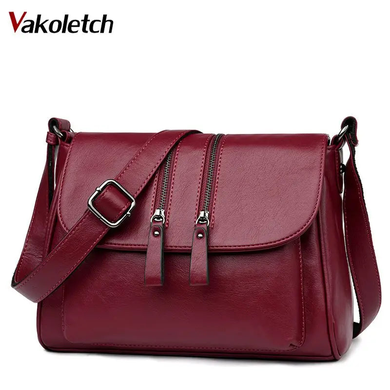 Soft Women Crossbody Bag Double Zipper Messenger Bag