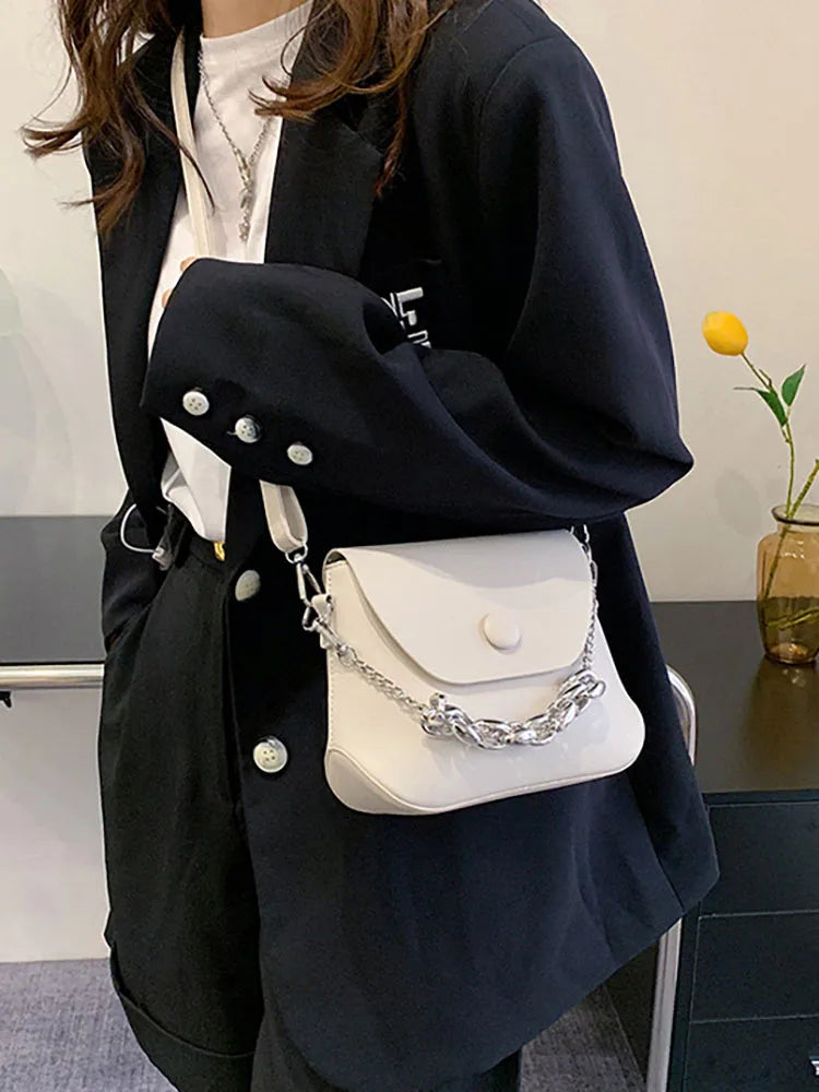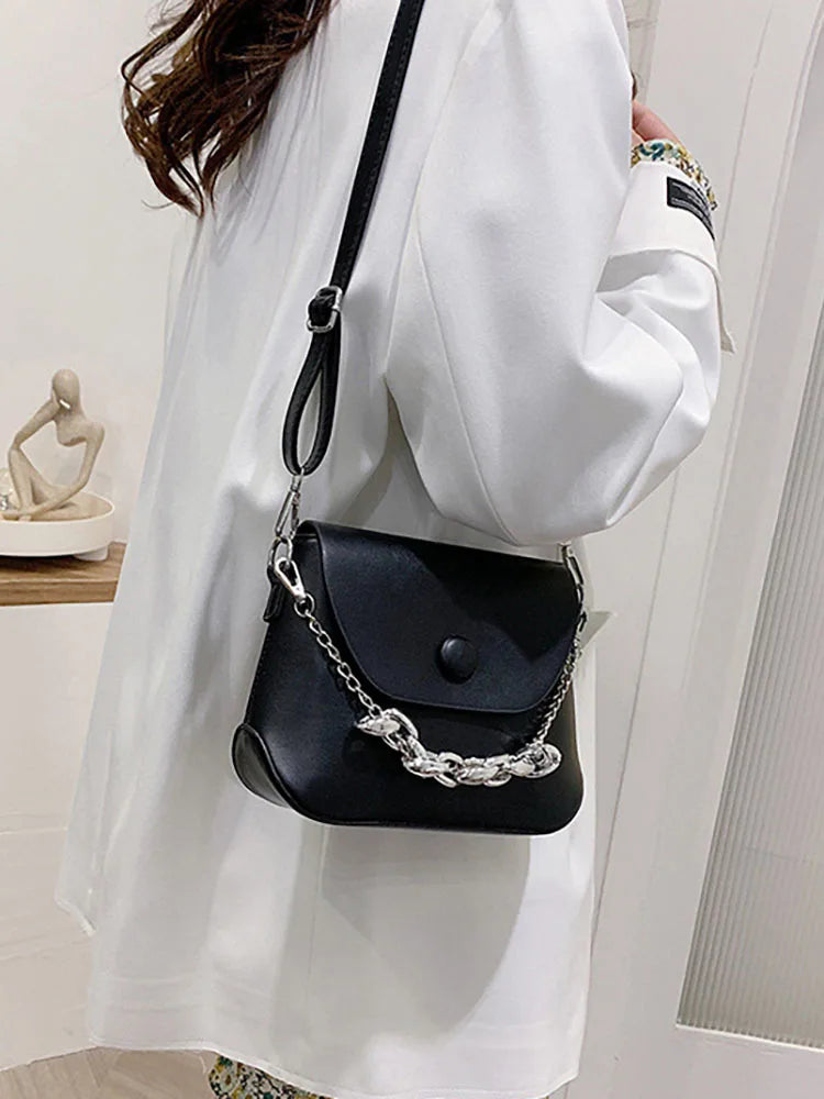 This stylish shoulder bag is perfect for everyday use, featuring a top handle and chain strap. It can hold a small iPhone and other essentials.
