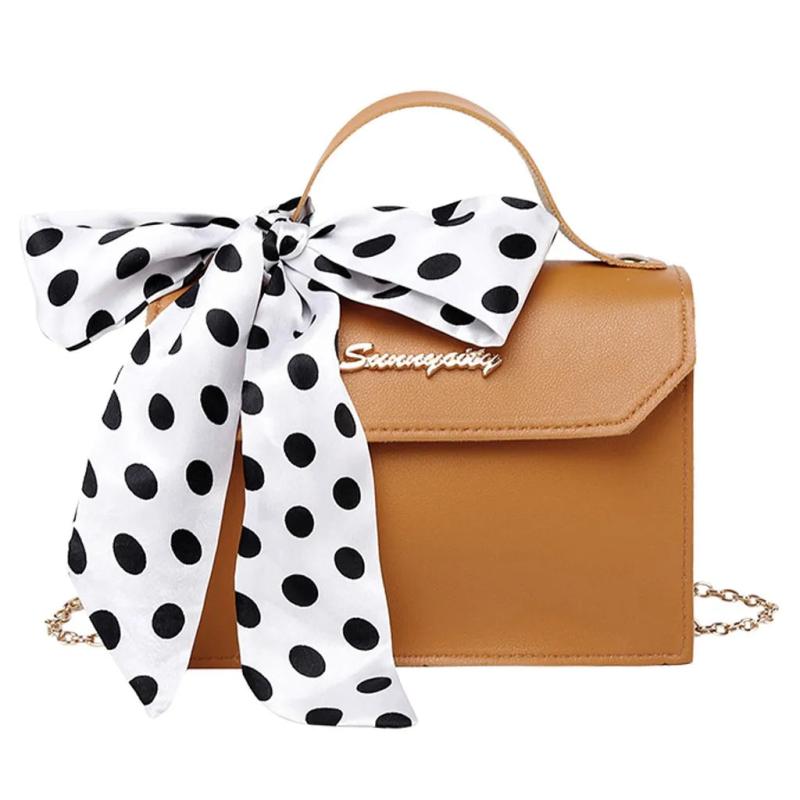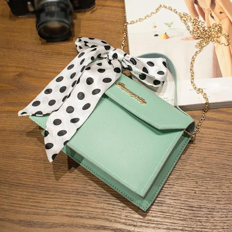 Solid Colors Crossbody Bag Retro Scarf Chain Handbag