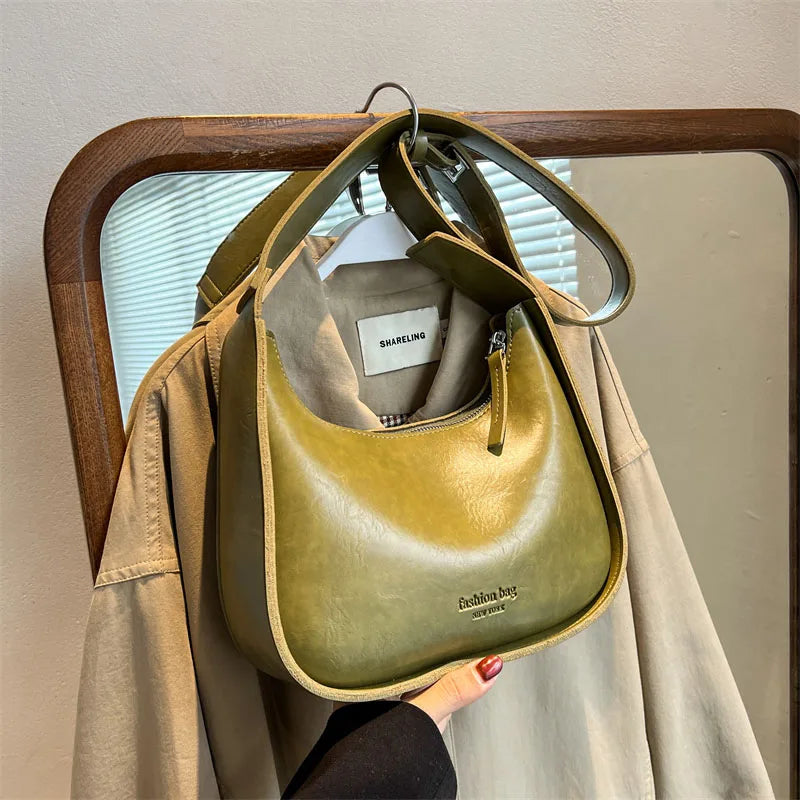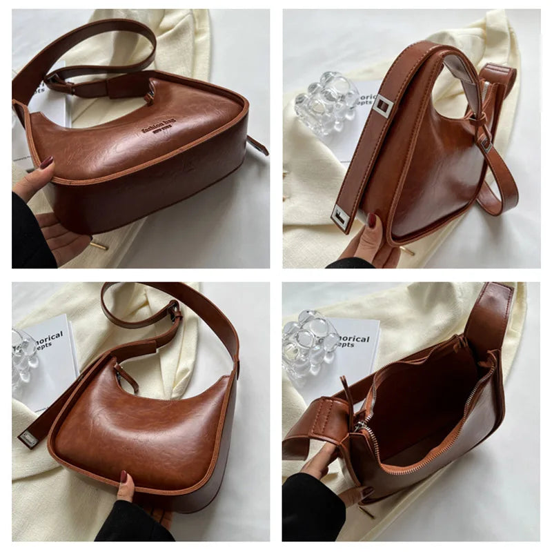 Solid Leather Crossbody Bag Women Satchel Wide Straps Handbag