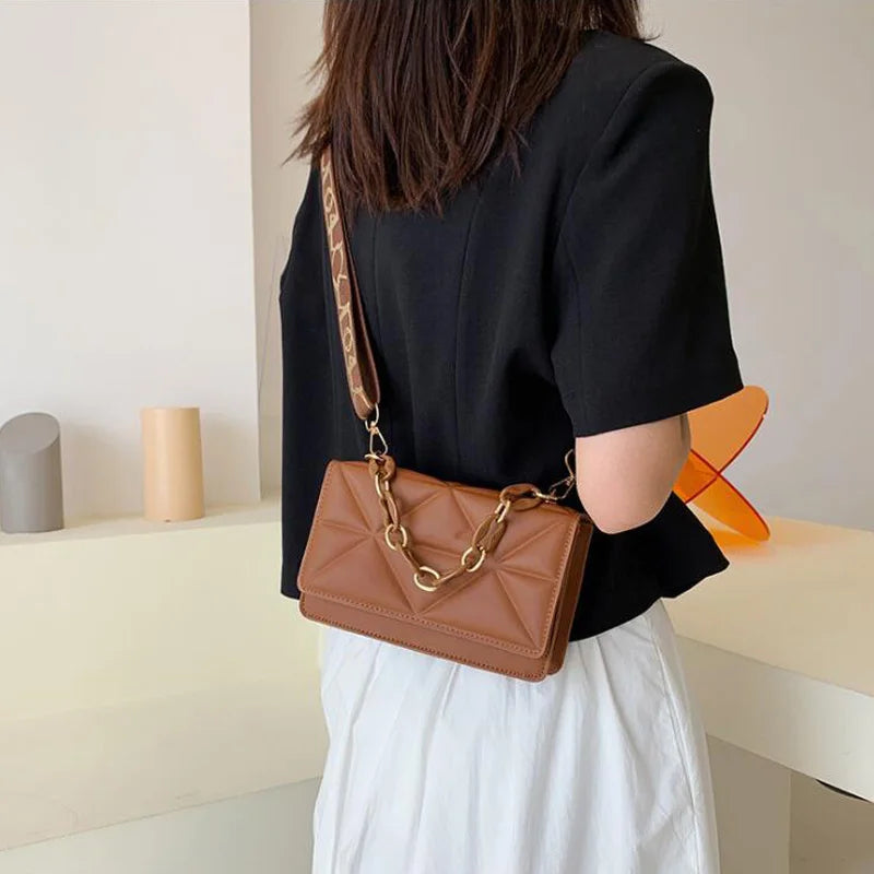 Stay on-trend with these stylish and versatile solid square crossbody bags. Featuring a wide strap shoulder bag design with a chain, these bags are perfect for any occasion.