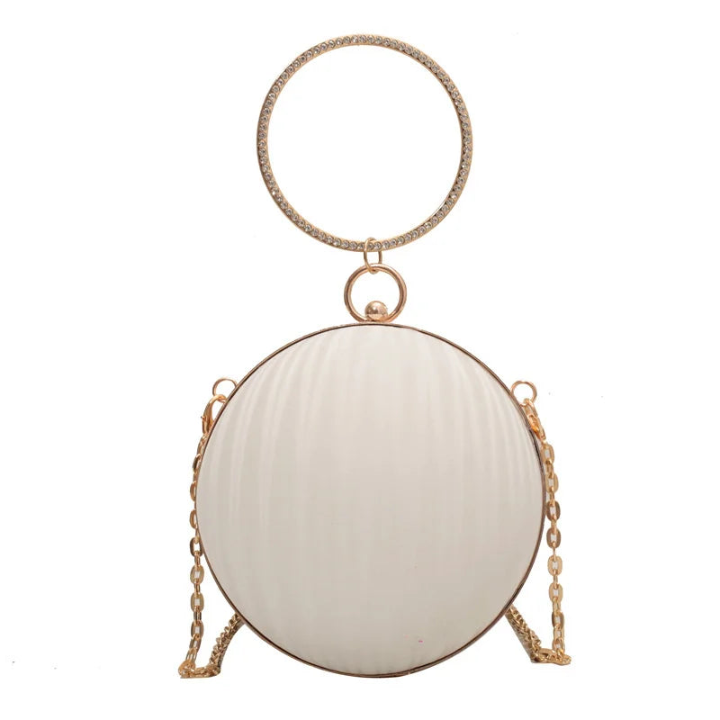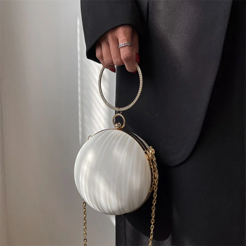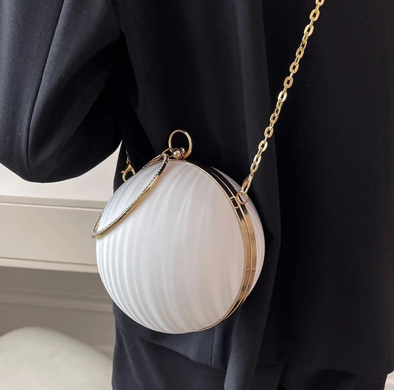 Elegant and chic spherical handbag with chain strap, perfect for dinner outings or special occasions.