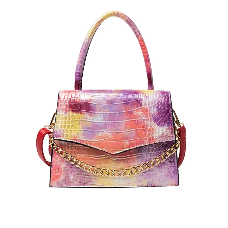 This casual small square bag features a beautiful tie-dye design in spring gradient colors. It is a stylish and portable messenger bag for everyday use.