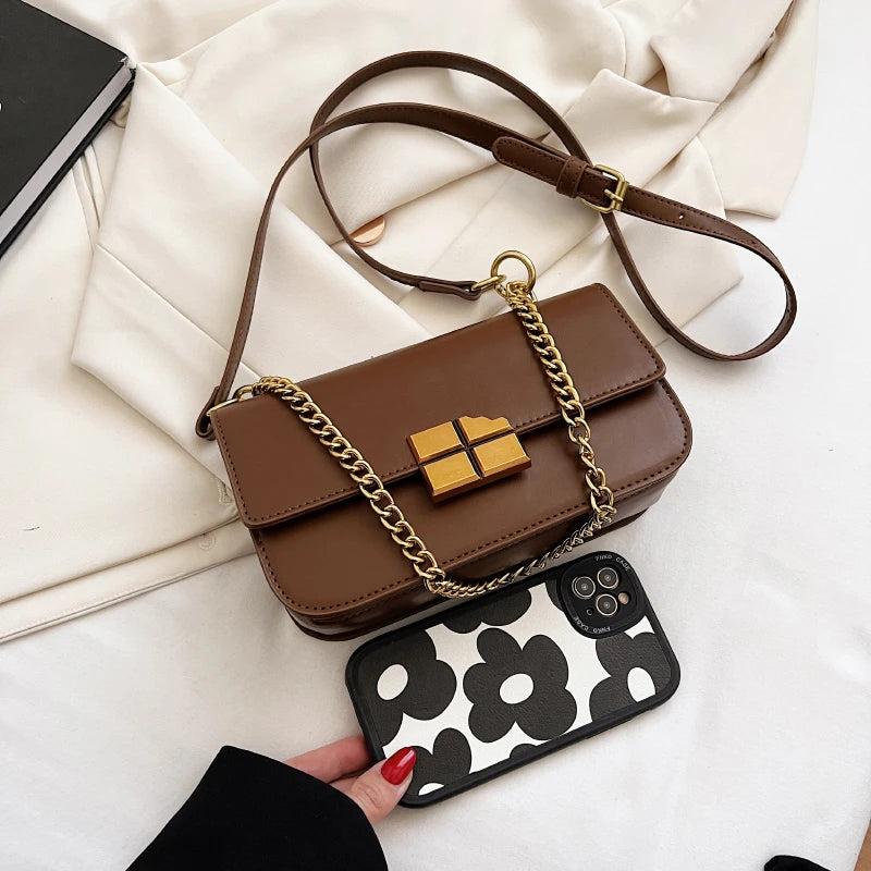This flap square crossbody bag is perfect for women. Made of high-quality leather with a wide strap, this handbag is stylish and functional for everyday use.