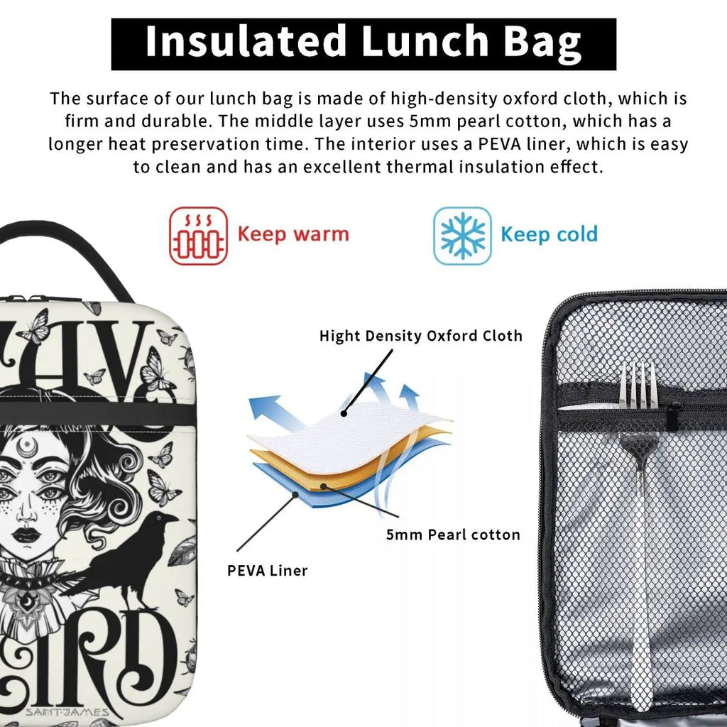 Stay Weird Insulated Lunch Bag for Women Leakproof Halloween Witch Cooler