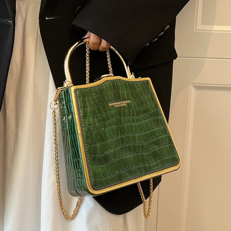 Stone Box Bags Metal Short Handle Women Handbag Shoulder