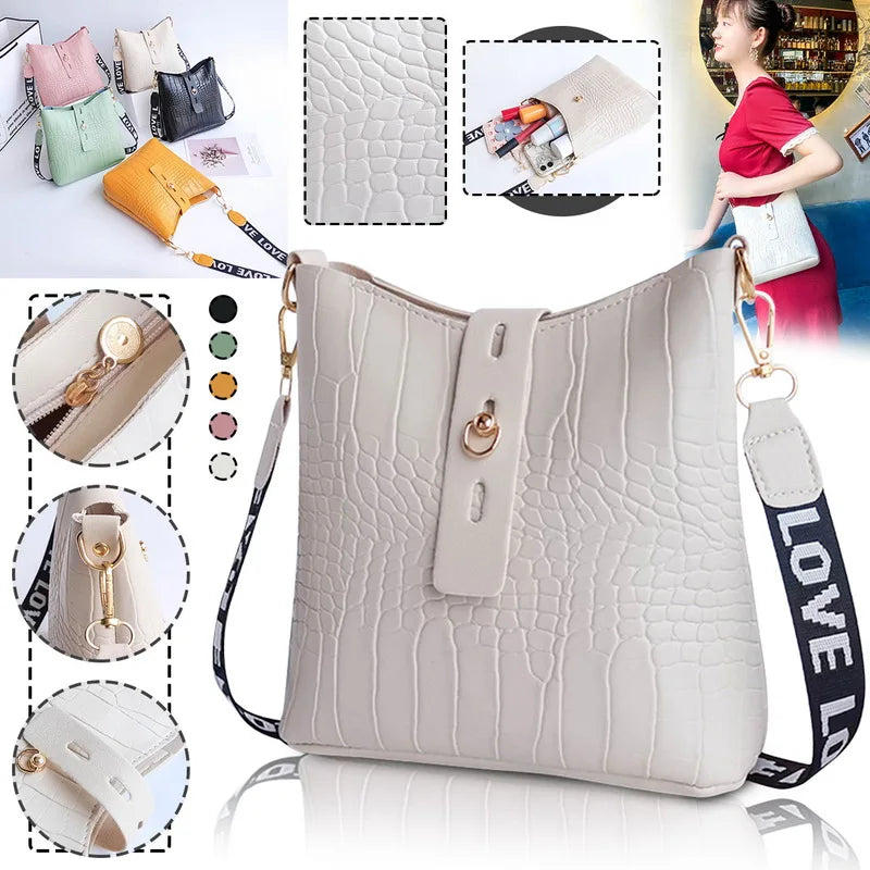 This small square bag is perfect for carrying your essentials in style. It features a stone grain design and can be worn as a shoulder or messenger bag.