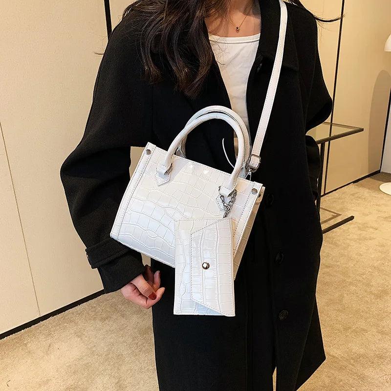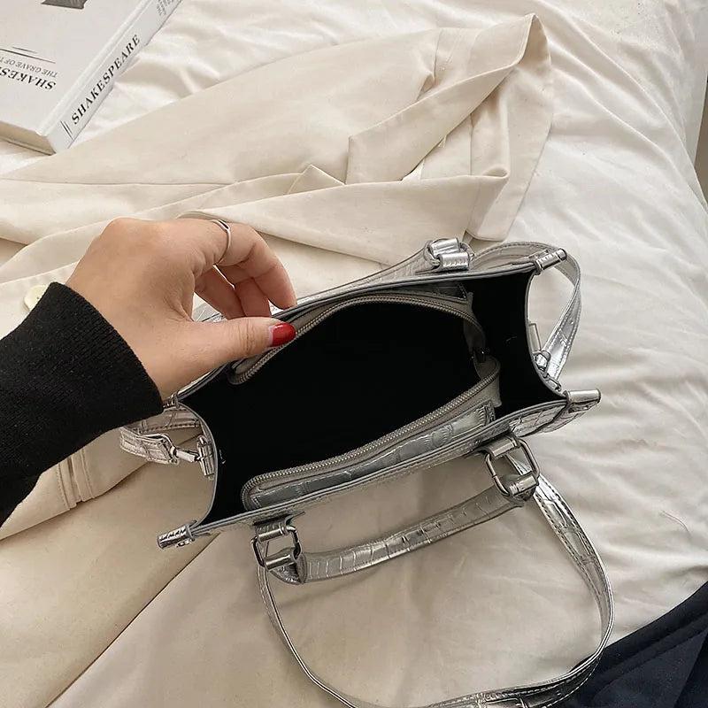 This small square shoulder bag is perfect for women, featuring a stylish stone pattern design. Ideal for a night out, it can be used as a crossbody bag or an elegant evening clutch.
