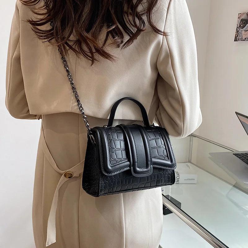 This stylish crossbody sling bag is made of high-quality PU leather with a stone pattern design, perfect for women. It features a spacious interior, adjustable shoulder strap, and a chic tote style.