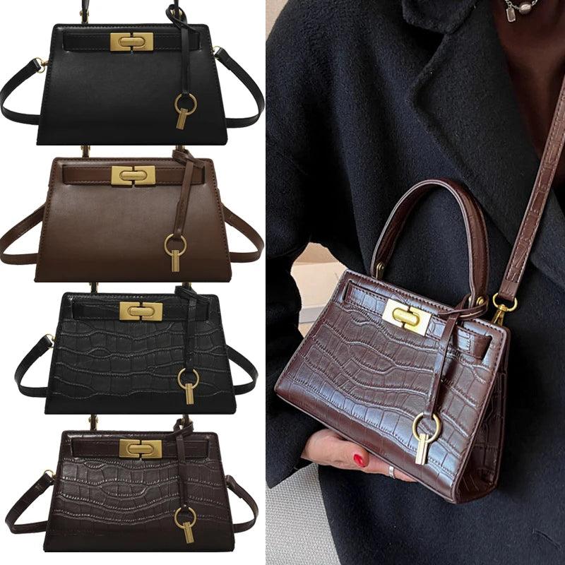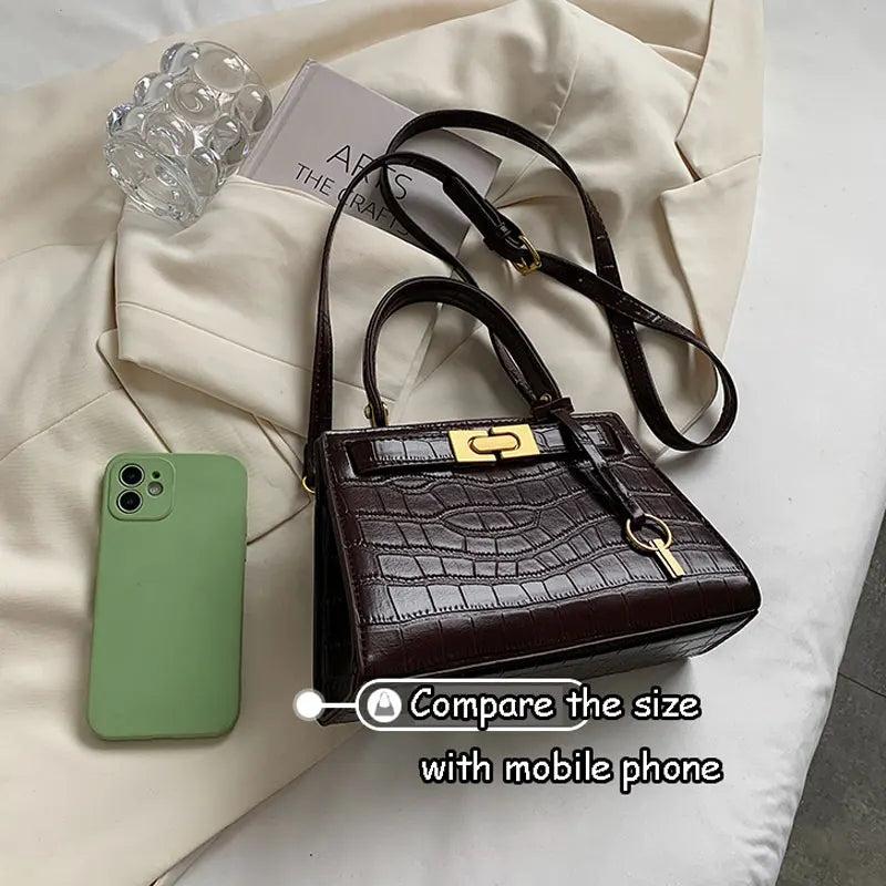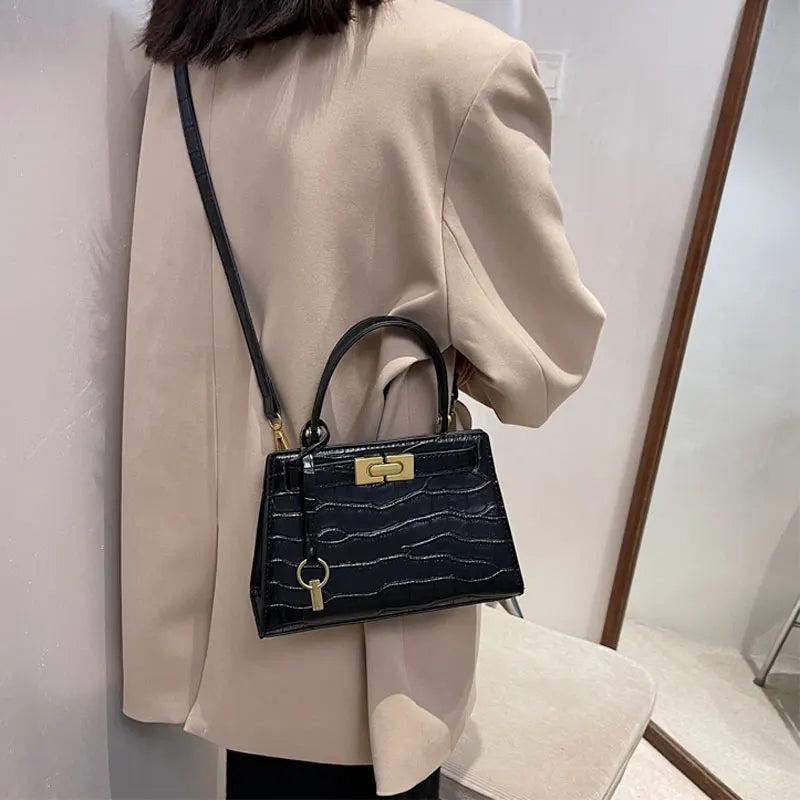 Elegant stone patterned PU leather handbag for women featuring a solid design. Perfect as a crossbody bag or shoulder companion.