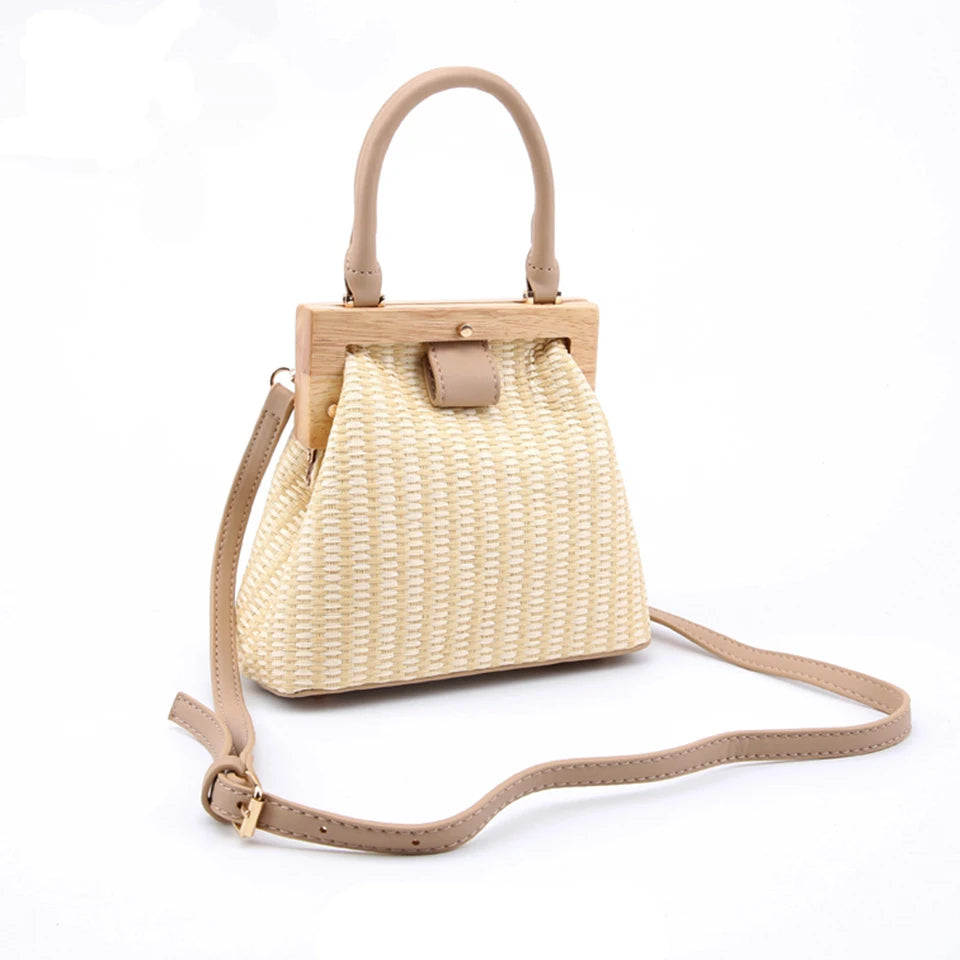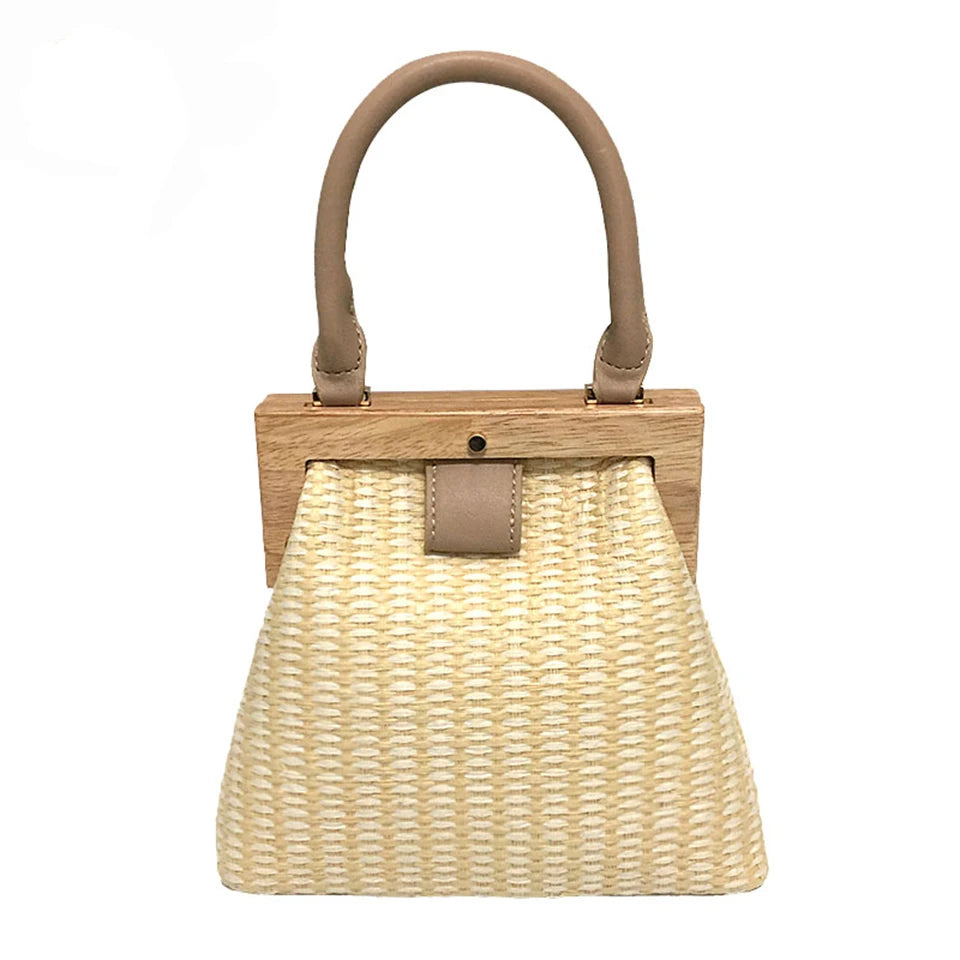 Straw Bag Wooden Clip Women Shoulder Beach Bag Handbags Women Bags