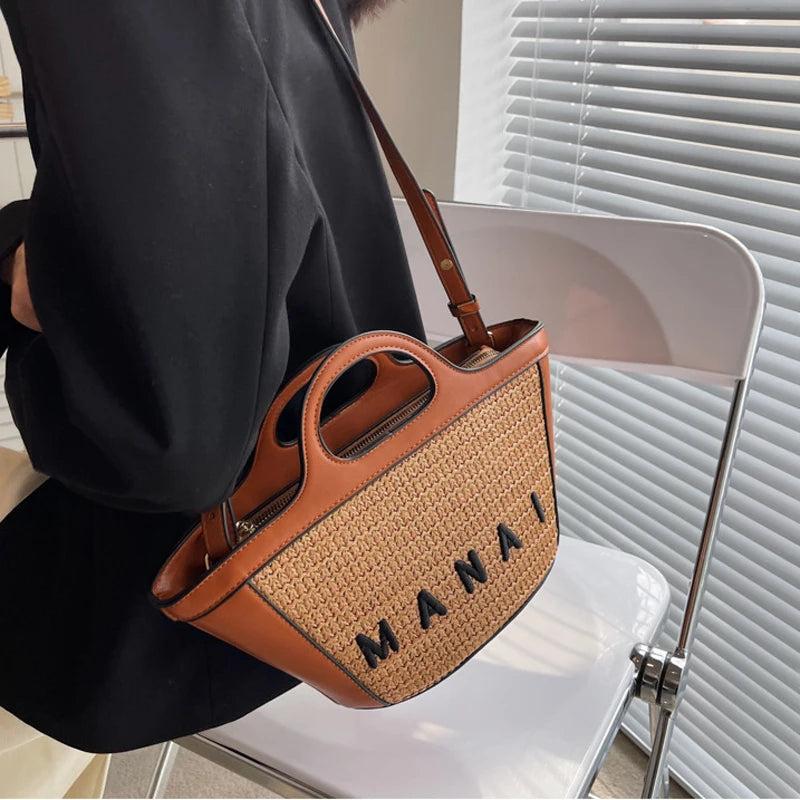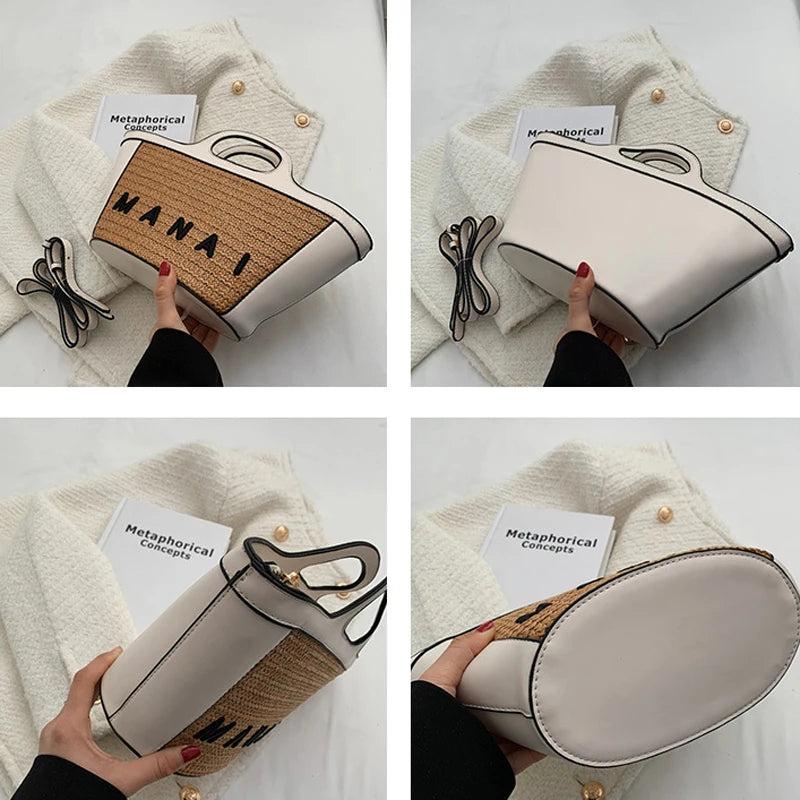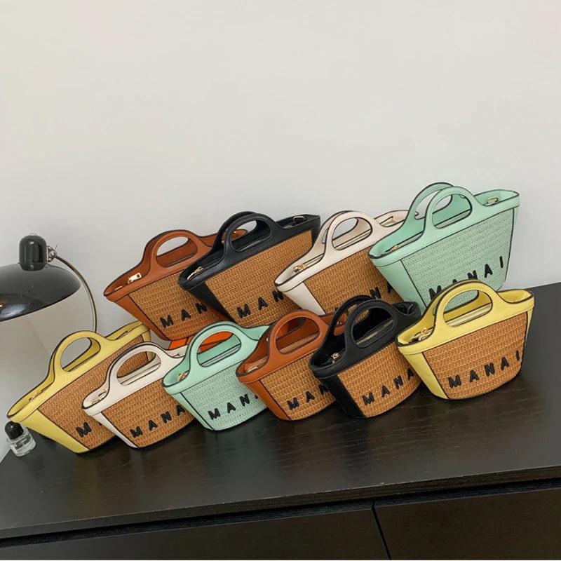 Stay stylish at the beach with this small straw handbag. The perfect accessory for your holiday look.
