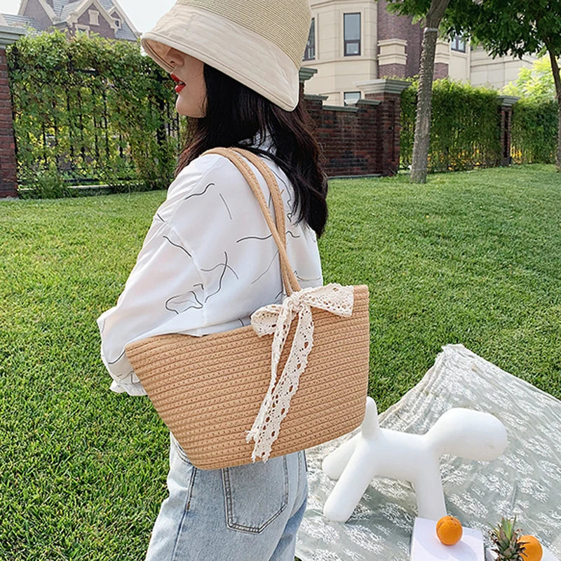 Straw Bucket Bag for Women Large Capacity Summer Beach Handbag