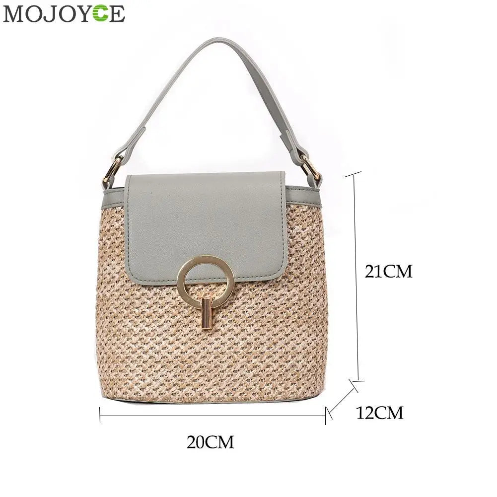 Straw Bucket Bag Women Crossbody Shoulder Messenger Travel Purse Handbag