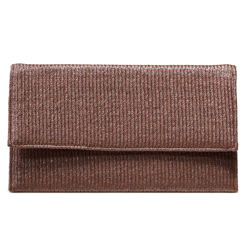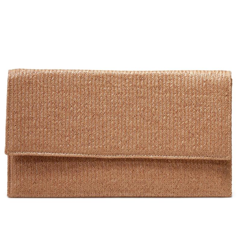 This stylish straw clutch purse is perfect for summer beach outings or evening events. It features a woven design and can be worn as a shoulder bag.