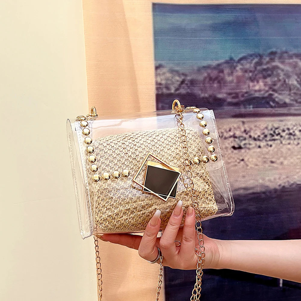 This stylish straw crossbody shoulder bag is perfect for summer days at the beach or casual outings. Made of high-quality rattan material, it's ideal for travel and shopping.