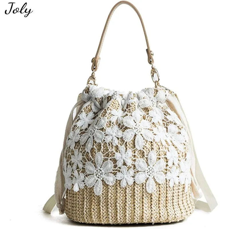 - Chic half moon design with intricate straw lace weaving