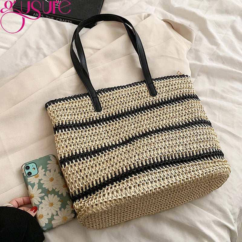 Straw Shopper Tote Rattan Woven Shoulder Bags Large Capacity Handbags