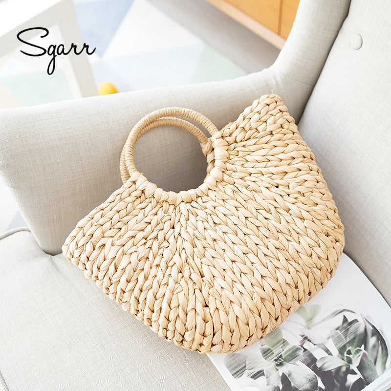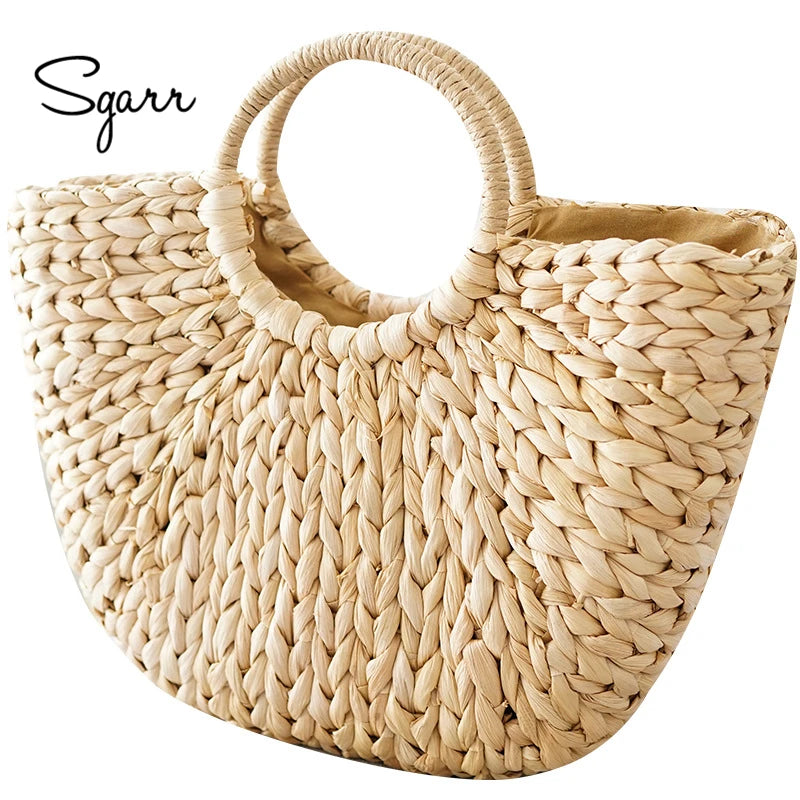 Stay stylish this summer with this high-quality straw handbag. Perfect for the beach or everyday use, it offers a large capacity and a drawstring closure for added security.