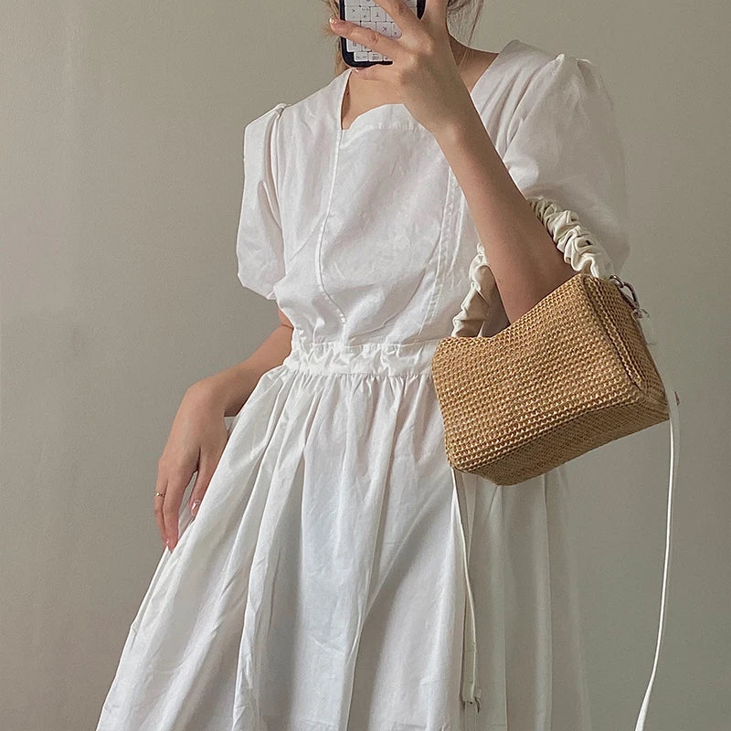 Straw Shoulder Bag Women Casual Purse Handbags Vintage Weave Frilled Handle