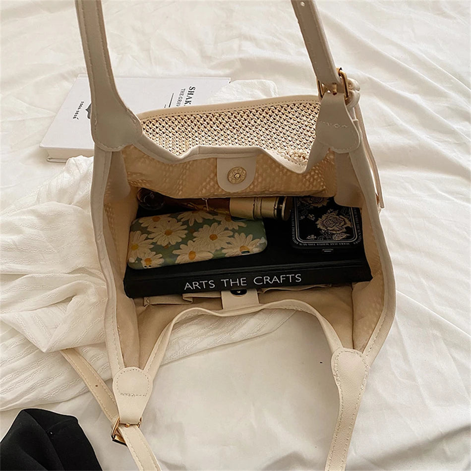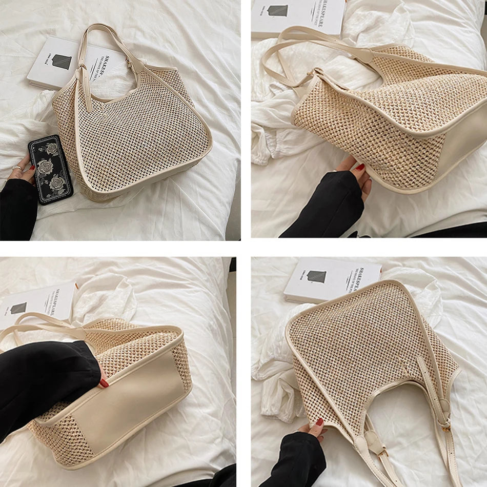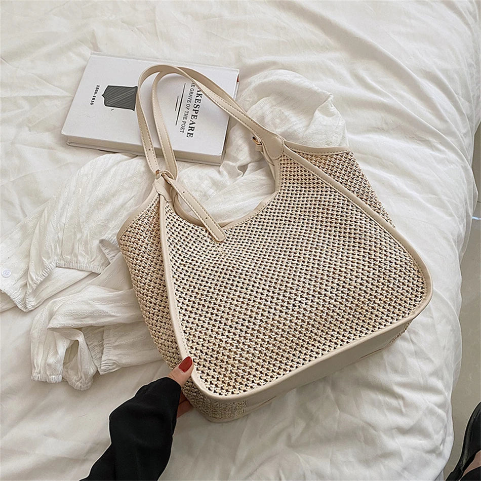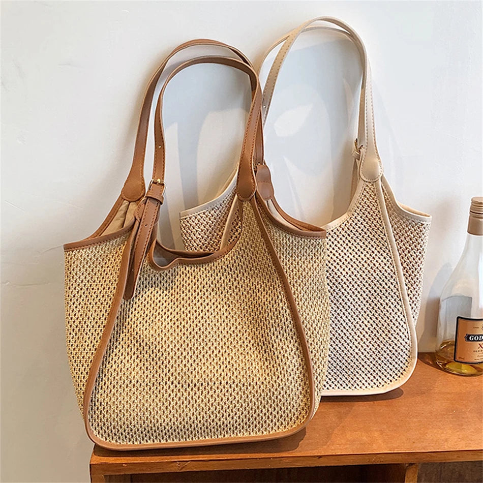 Straw Shoulder Bag Women's Casual Tote Retro Beach Handbag