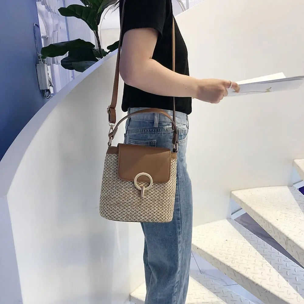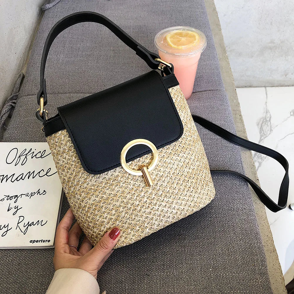 Straw Weave Shoulder Bags for Women Summer Bucket Handbags Beach Totes