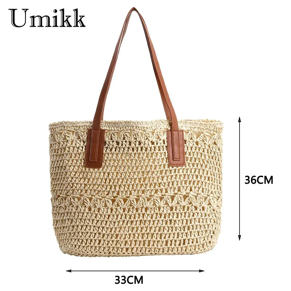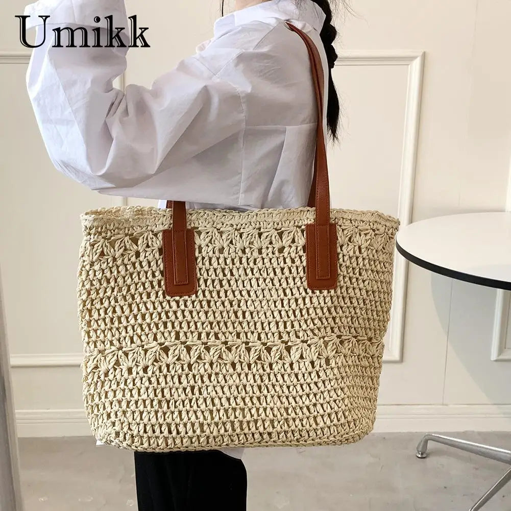 Stay stylish on your seaside vacation with this straw woven shoulder bag. Featuring a large capacity and boho design, perfect for beach outings and shopping.