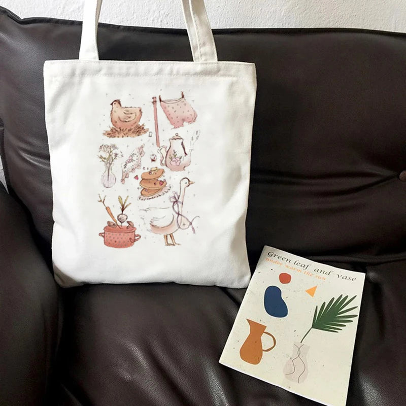 This stylish tote bag features a fun strawberry print, perfect for shopping or school. Made of durable cloth material, it's eco-friendly and reusable.