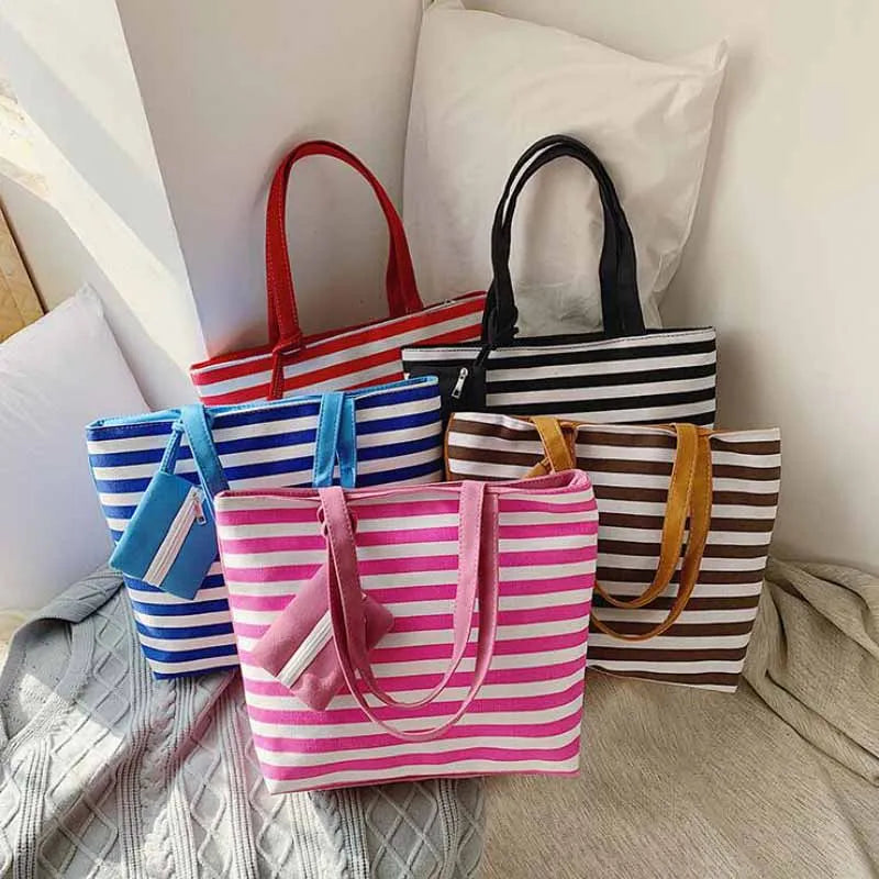 Striped Canvas Large Shoulder Tote Beach Bag