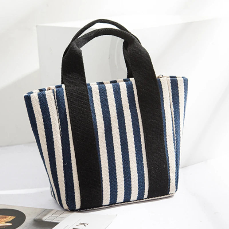 Striped Canvas Tote Bag Small Women Bag Portable Women's Handbag Shoulder Bag