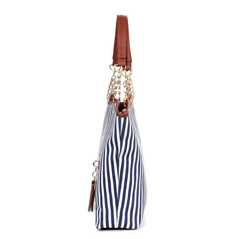 Striped Casual Tote Canvas Handbag Shoulder Shopping Bags Zipper Large Bag