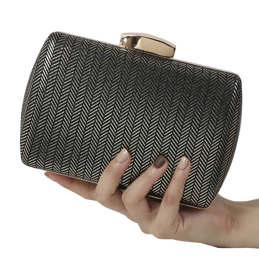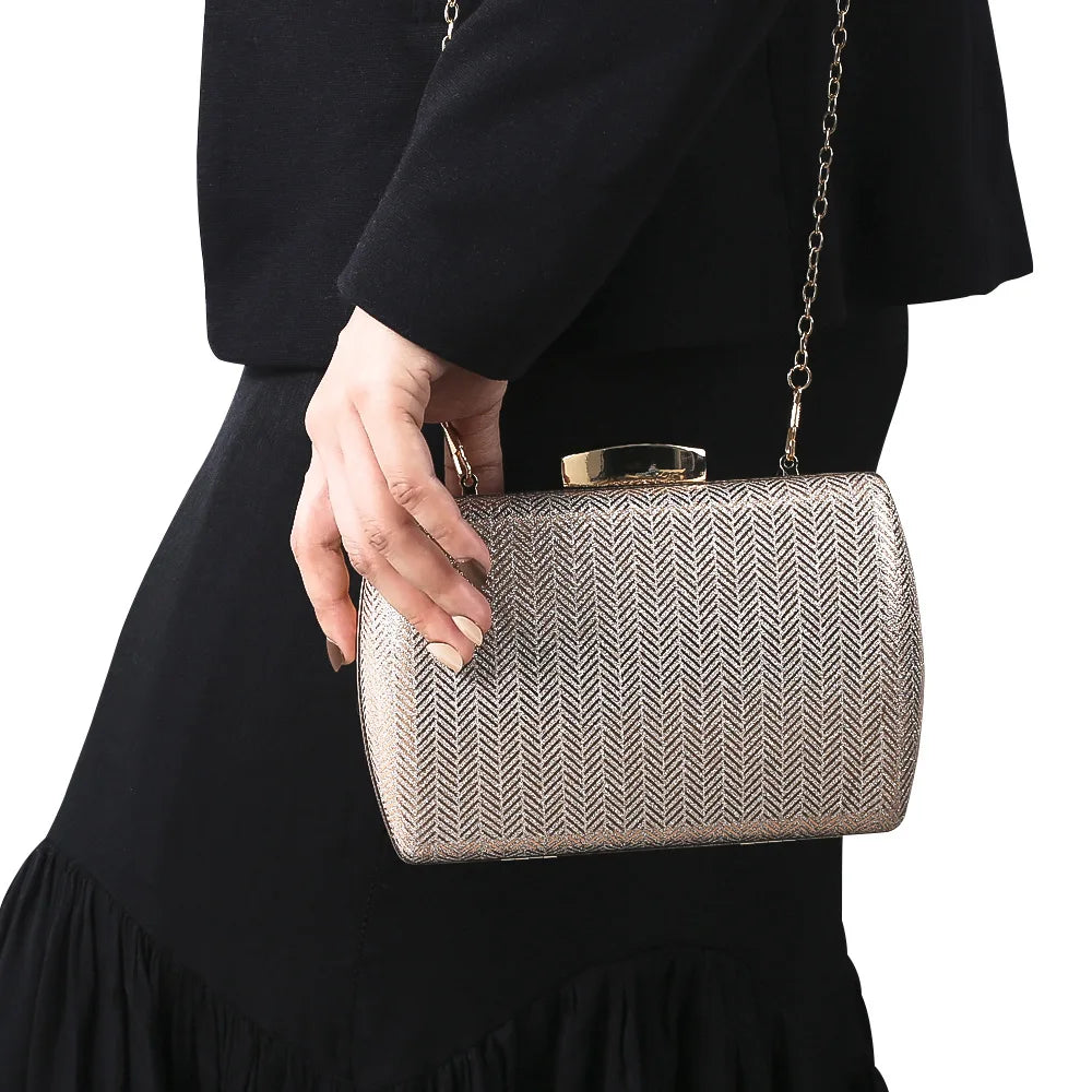Stylish and versatile clutch bag perfect for weddings, evening events, or everyday use. Features a pillbox shape with a chain shoulder strap.