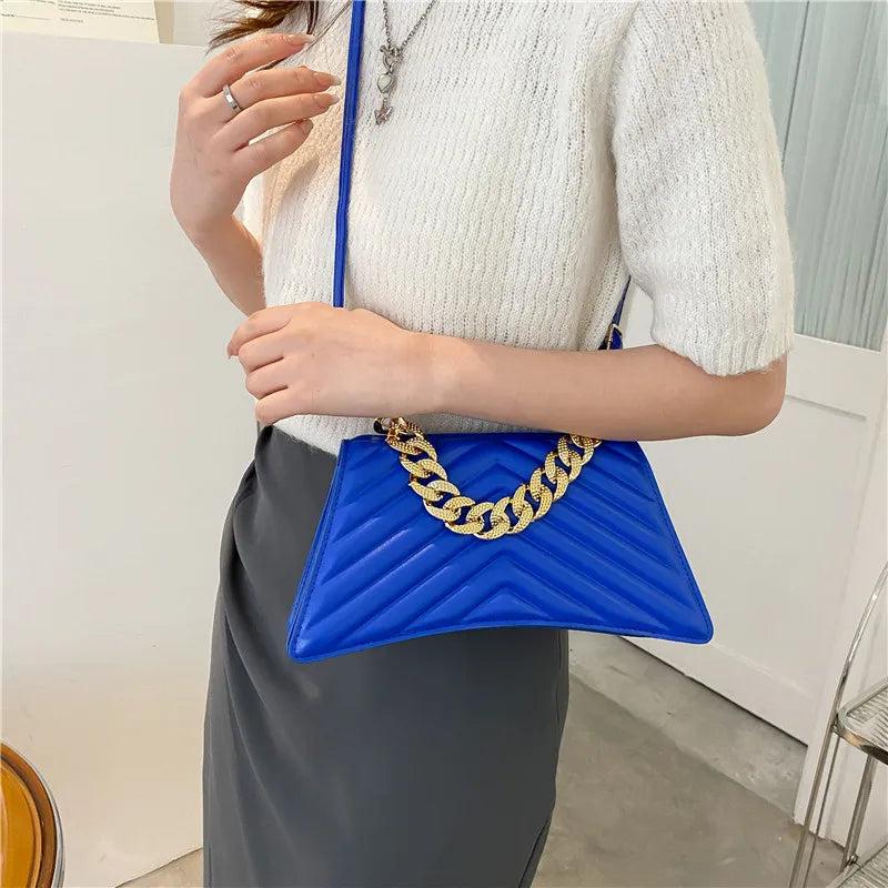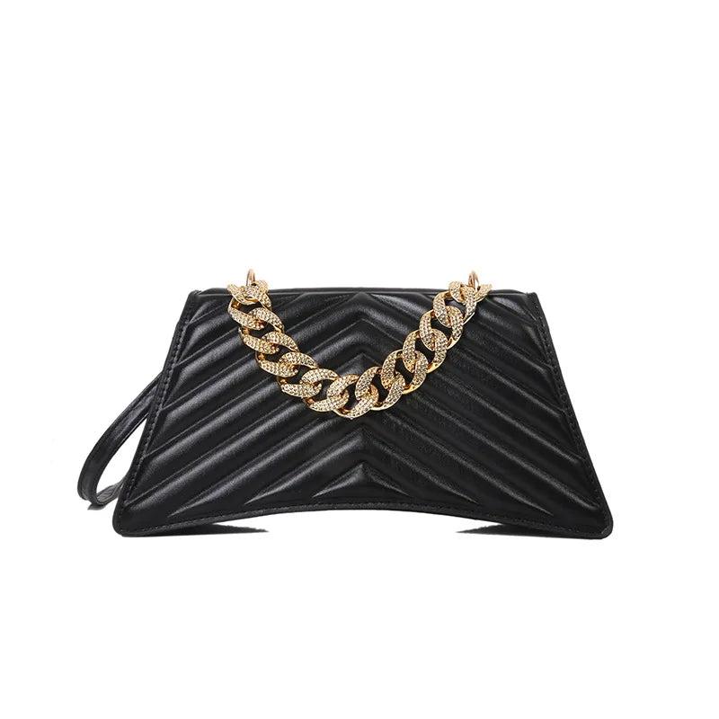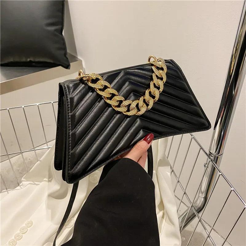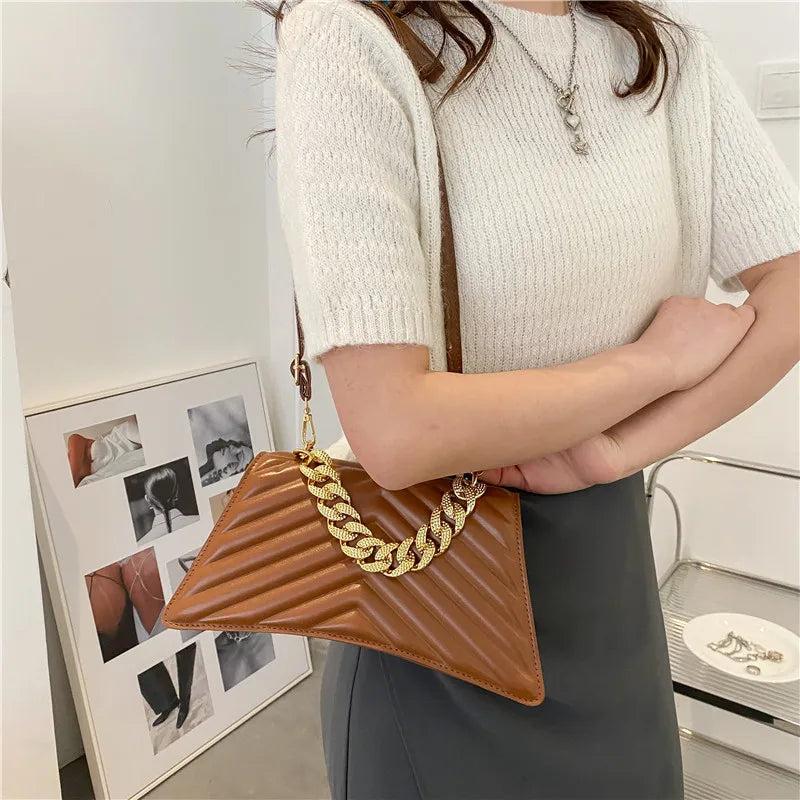This Chain Bag is a stylish accessory for women in spring. It features indentation design and a retro vibe with stripes. Perfect for carrying essentials.