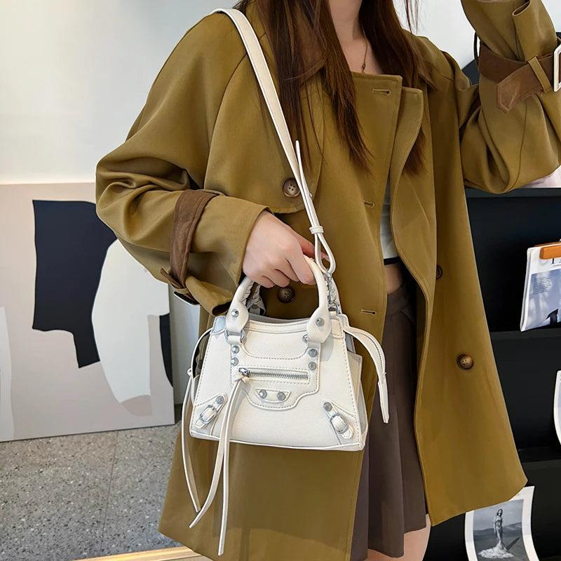 This stylish shoulder bag is perfect for women on-the-go. It features stud details and a crossbody design for convenience and style.