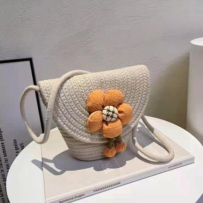 This women's crossbody purse features a braided design and a charming flower pendant, perfect for casual outings and adding a touch of style to your look.