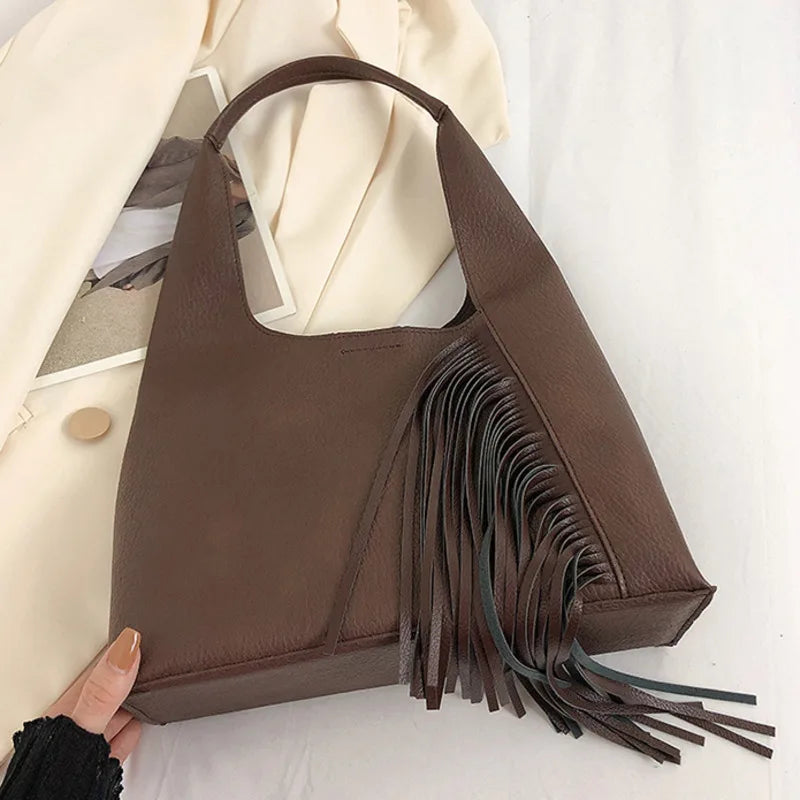 Stylish Large Capacity PU Leather Tassel Armpit Bag for Women