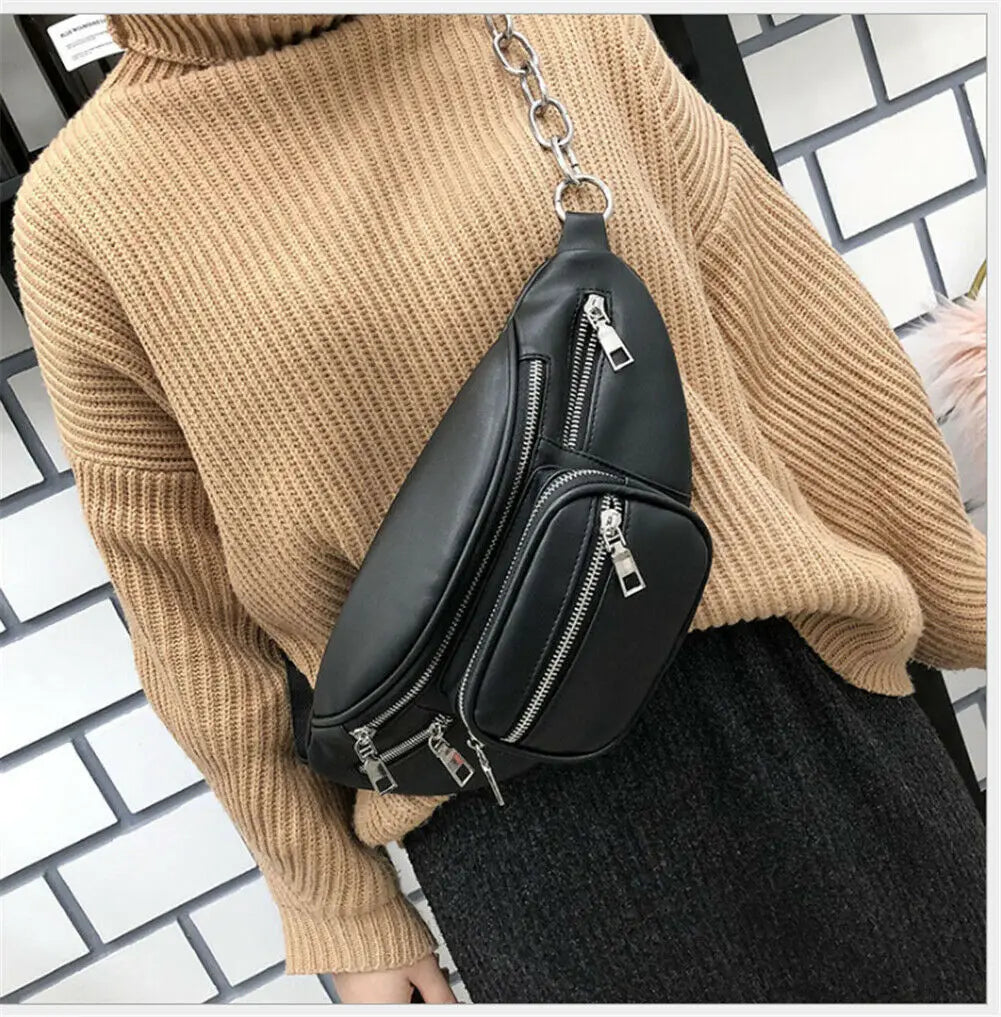 Stylish PU Waist Bag Chain Fanny Pack Travel Belt Purse Shoulder Bags Tote