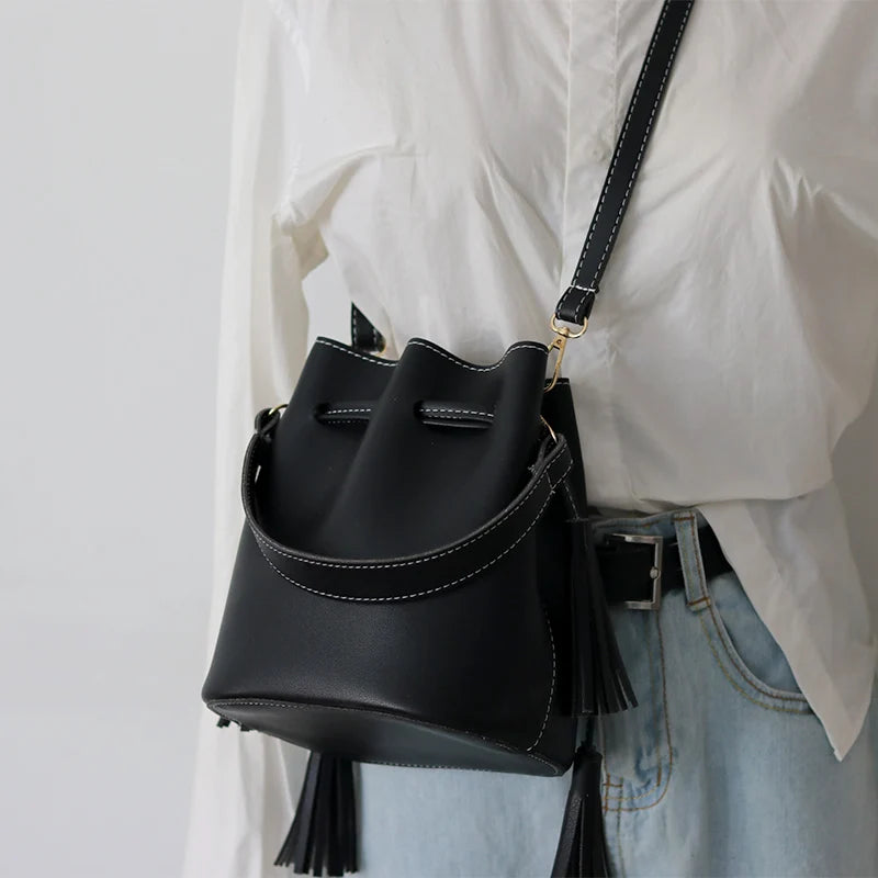 Stylish Tassel Bucket Shoulder Bag Women Messenger Bag