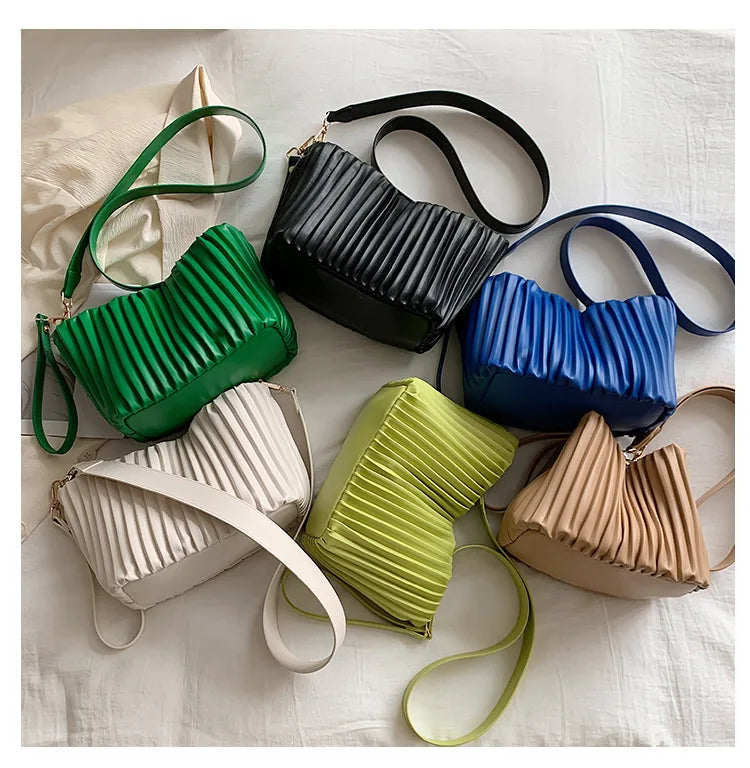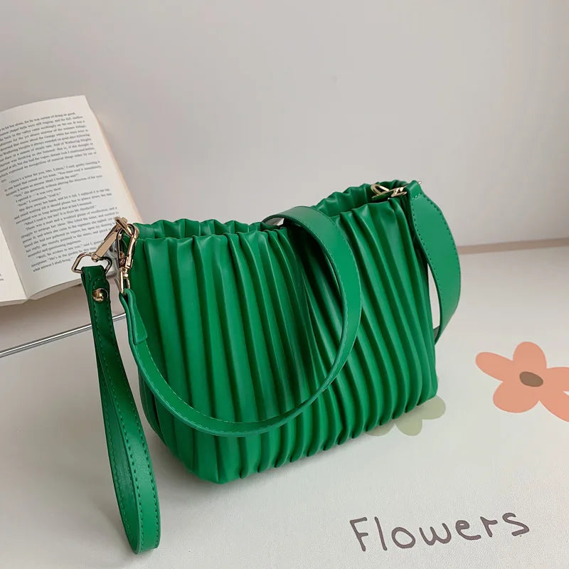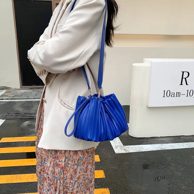 Summer Bucket Shoulder Bag with Pleats for Women