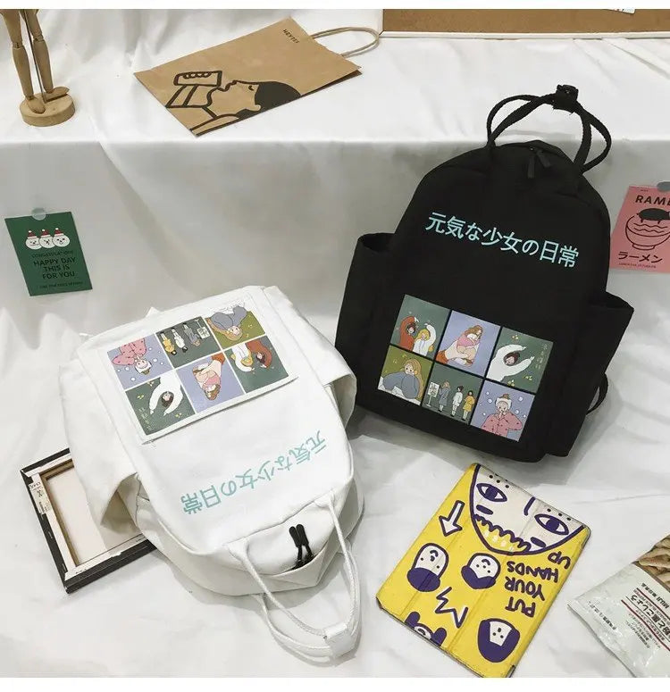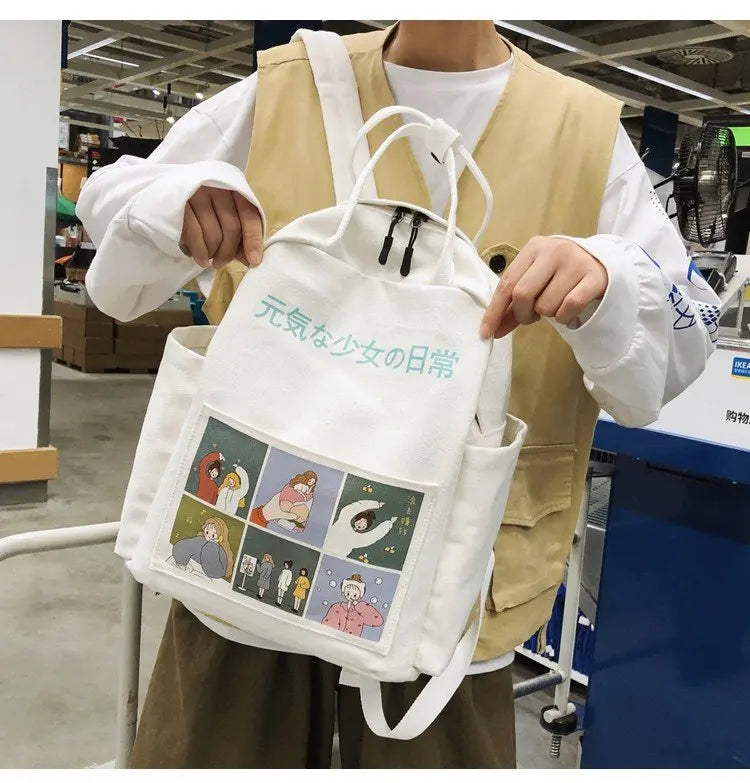 Summer Cartoon Canvas Backpack for Teenage Girls