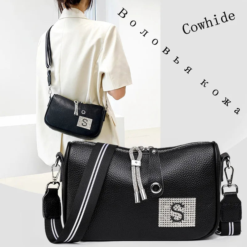 Summer Cowhide Shoulder Bag Tassel Crossbody Bag for Women