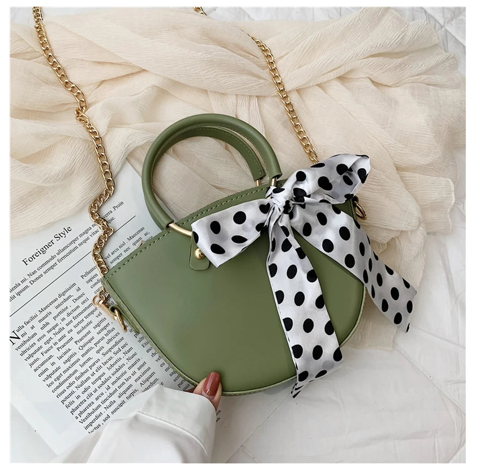 Description:Elevate your style with this chic handbag featuring a silk ribbon accent. Perfect for everyday use or special occasions.Features: Fashionable green handbag with silk ribbon Small and convenient size for daily essentials Can be worn as a shoulder bag or handheld Ideal for women who appreciate stylish accessories Perfect choice...