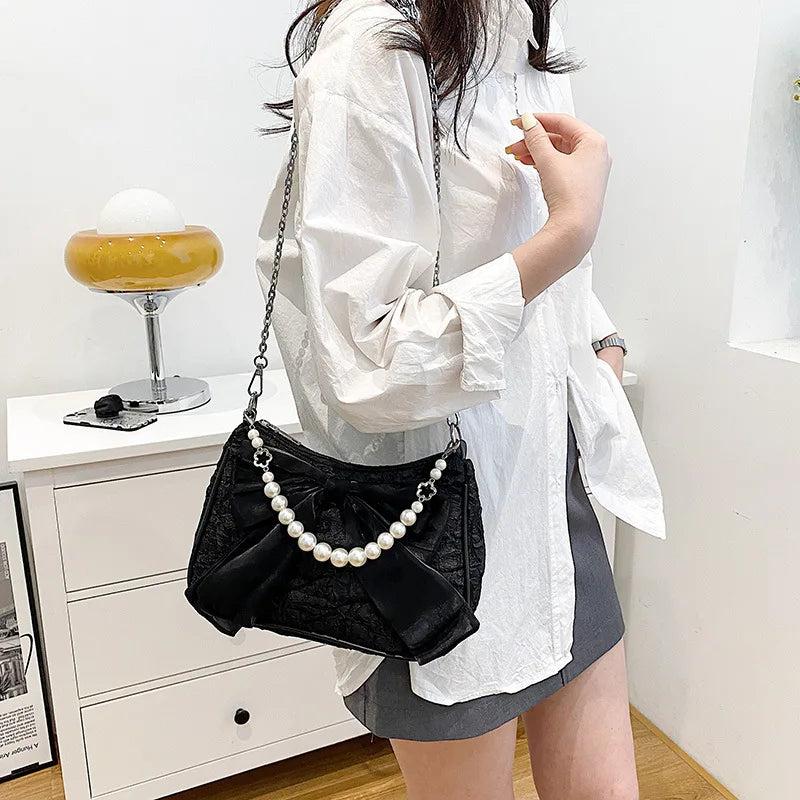 Summer Pearls Chains Shoulder Bag Flap Crossbody Purse Lady Messenger Handbag