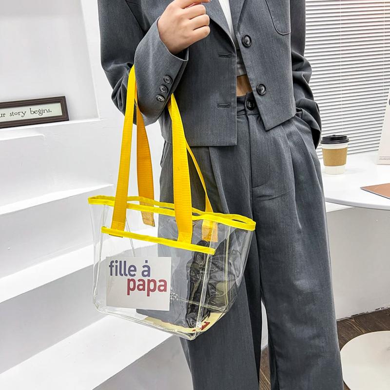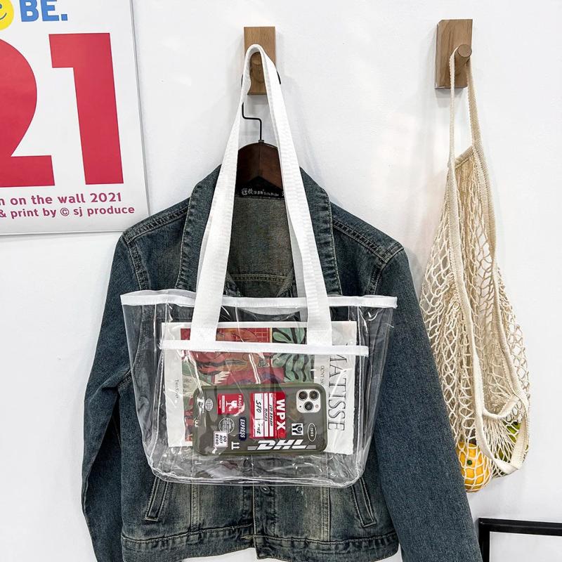 Stay stylish with this transparent PVC shoulder bag perfect for casual outings, shopping, beach trips, and travel.