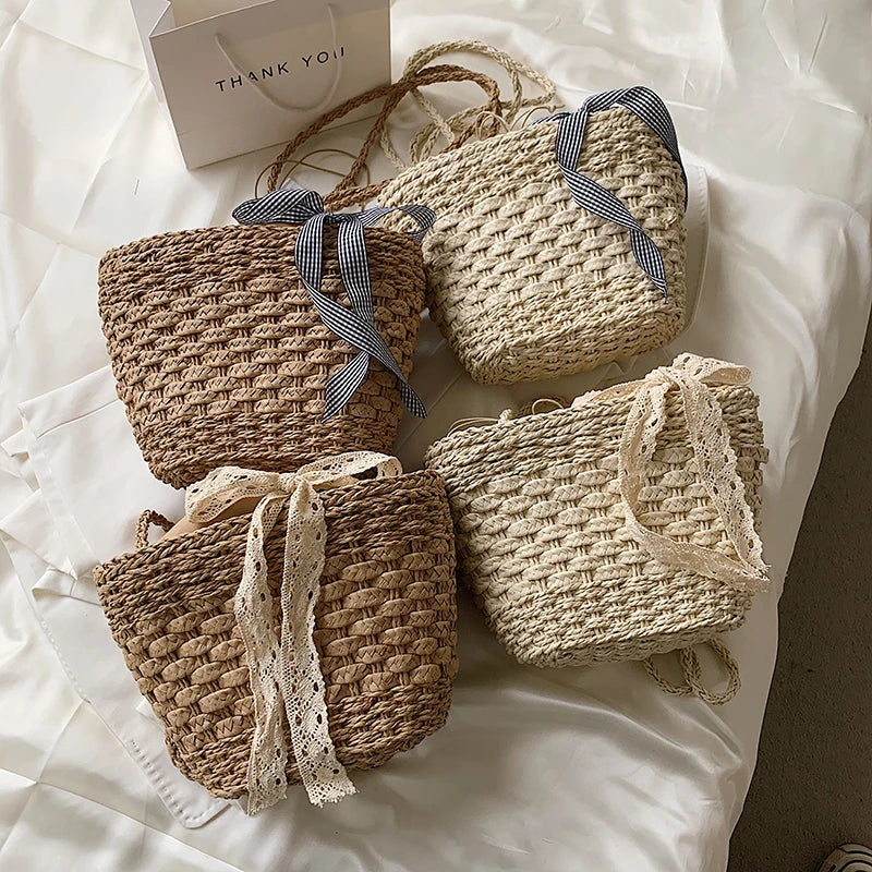 Summer Rattan Straw Crossbody Bag For Women Weaving Beach Handbags