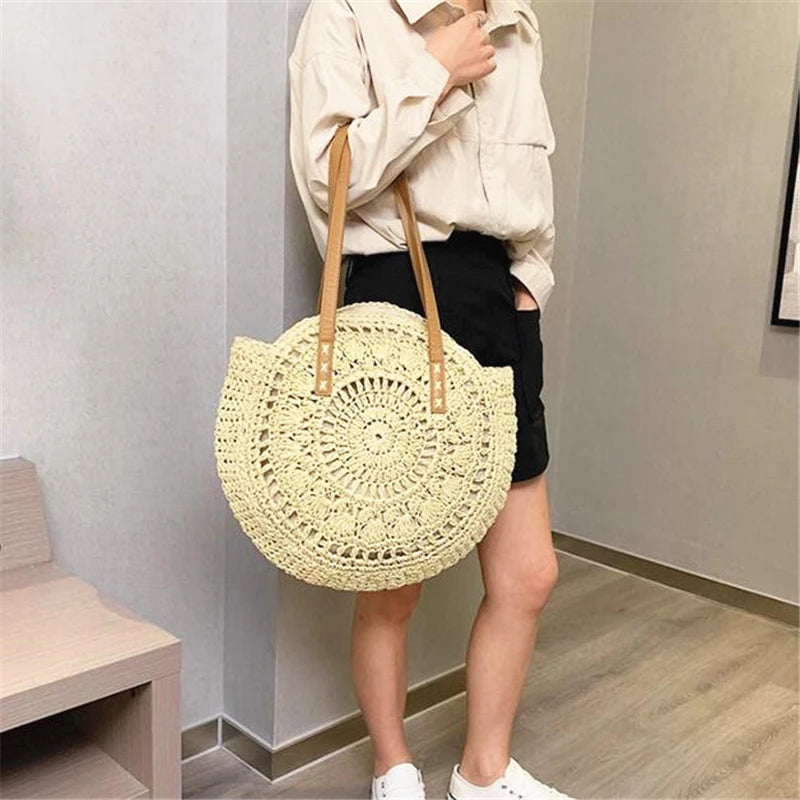 Summer Round Straw Bags For Women Rattan Shoulder Bag Woven